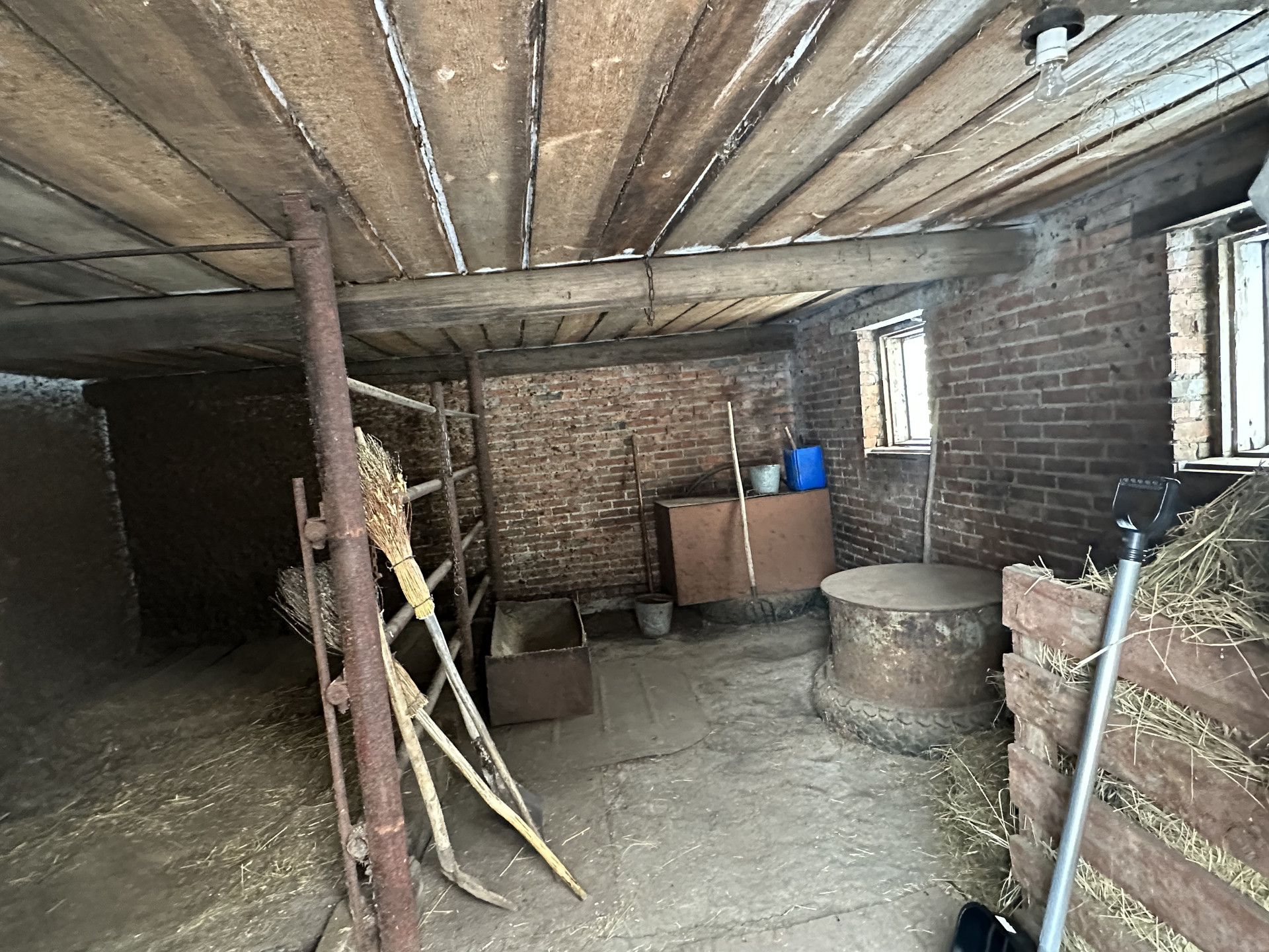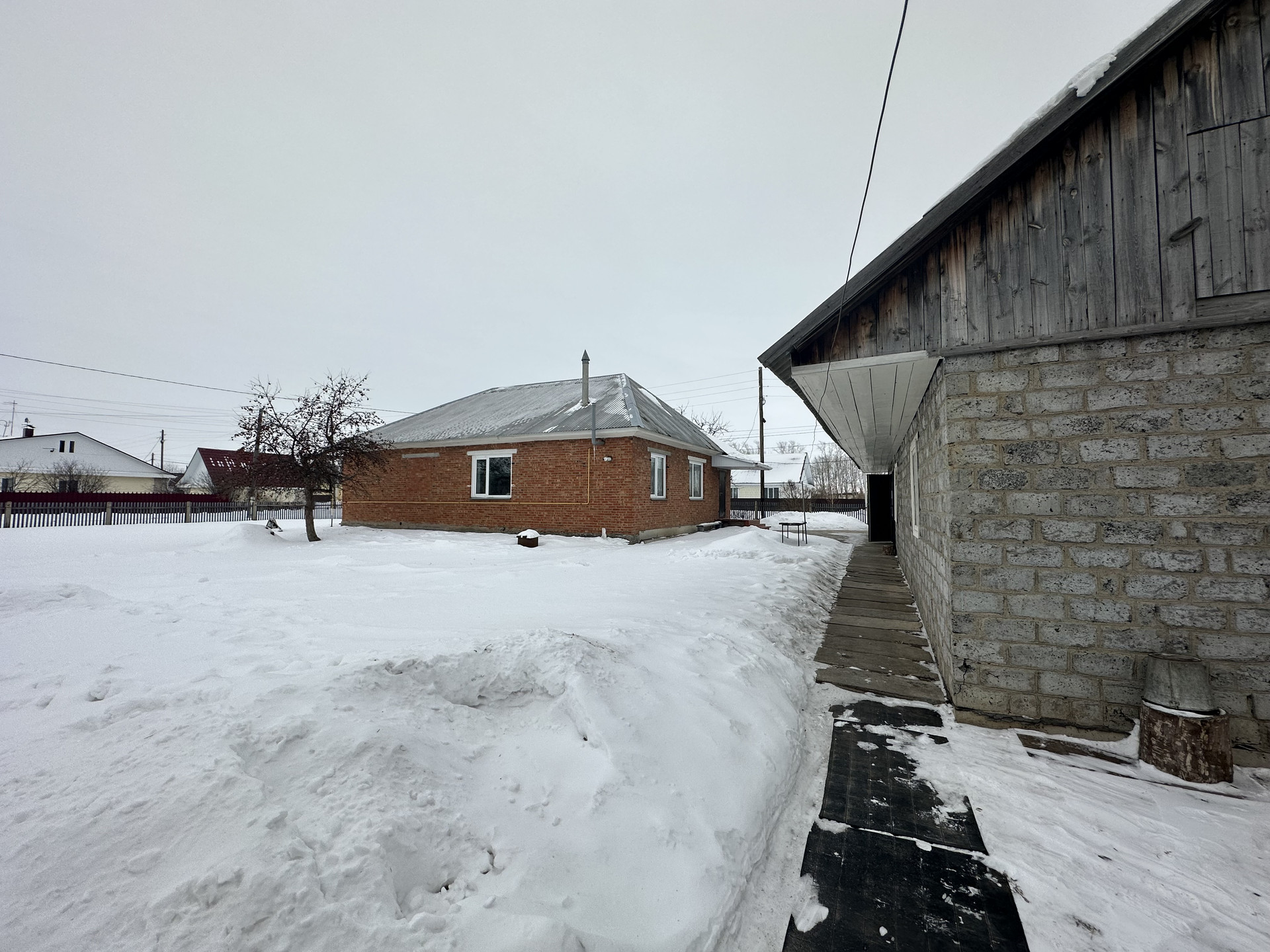 Участок общей площадью 1366 кв.м. На участке есть гараж, помещения для хозяйственных нужд, все под одной крышей, теплый кирпичный сарай для животноводства, огород с посадками ( яблони, вишня, смородина), летний водопровод.
