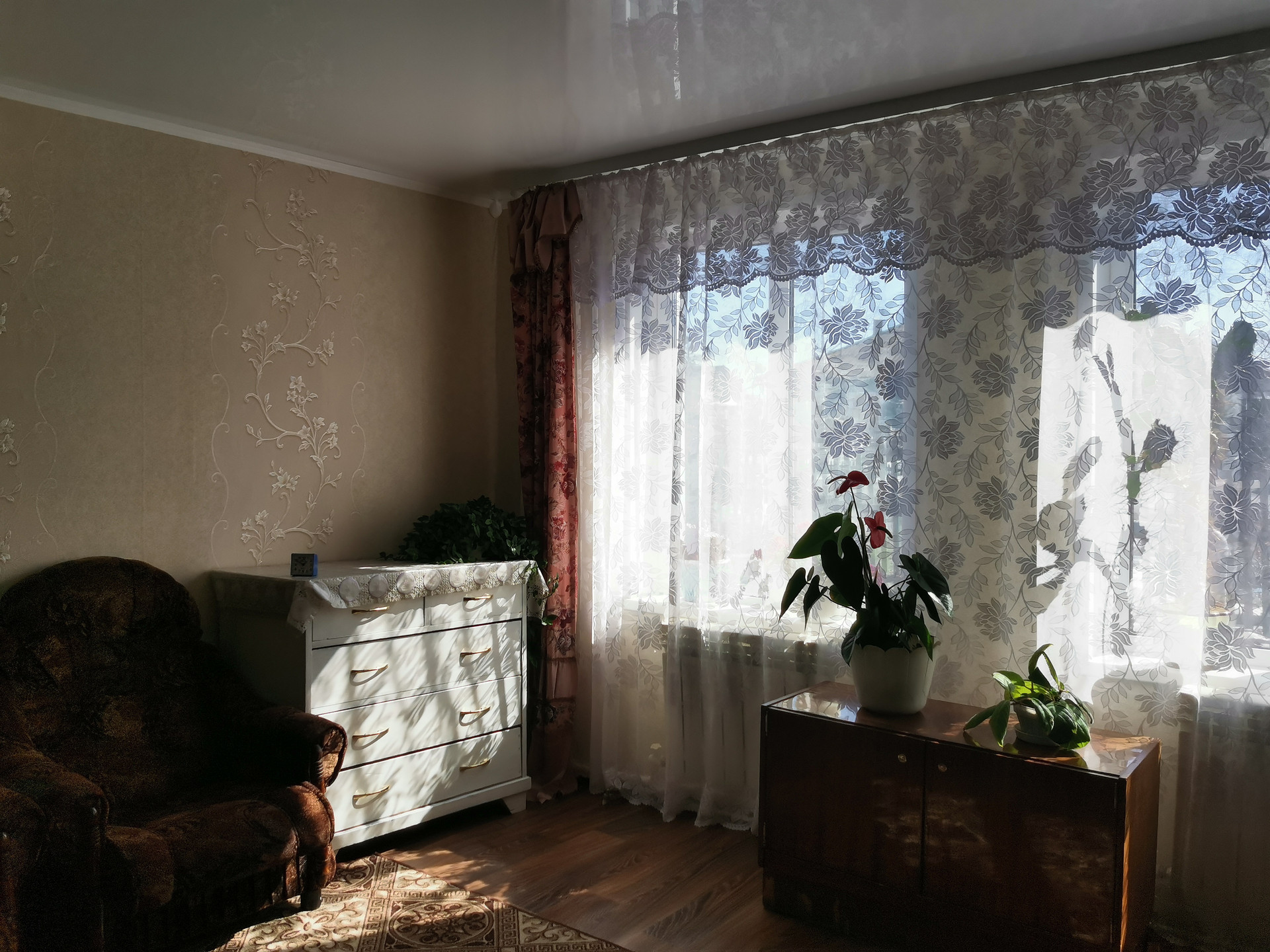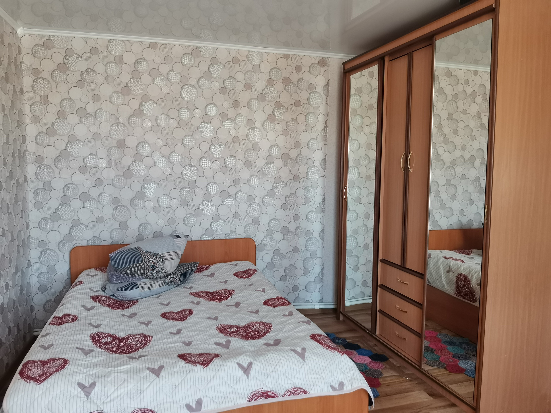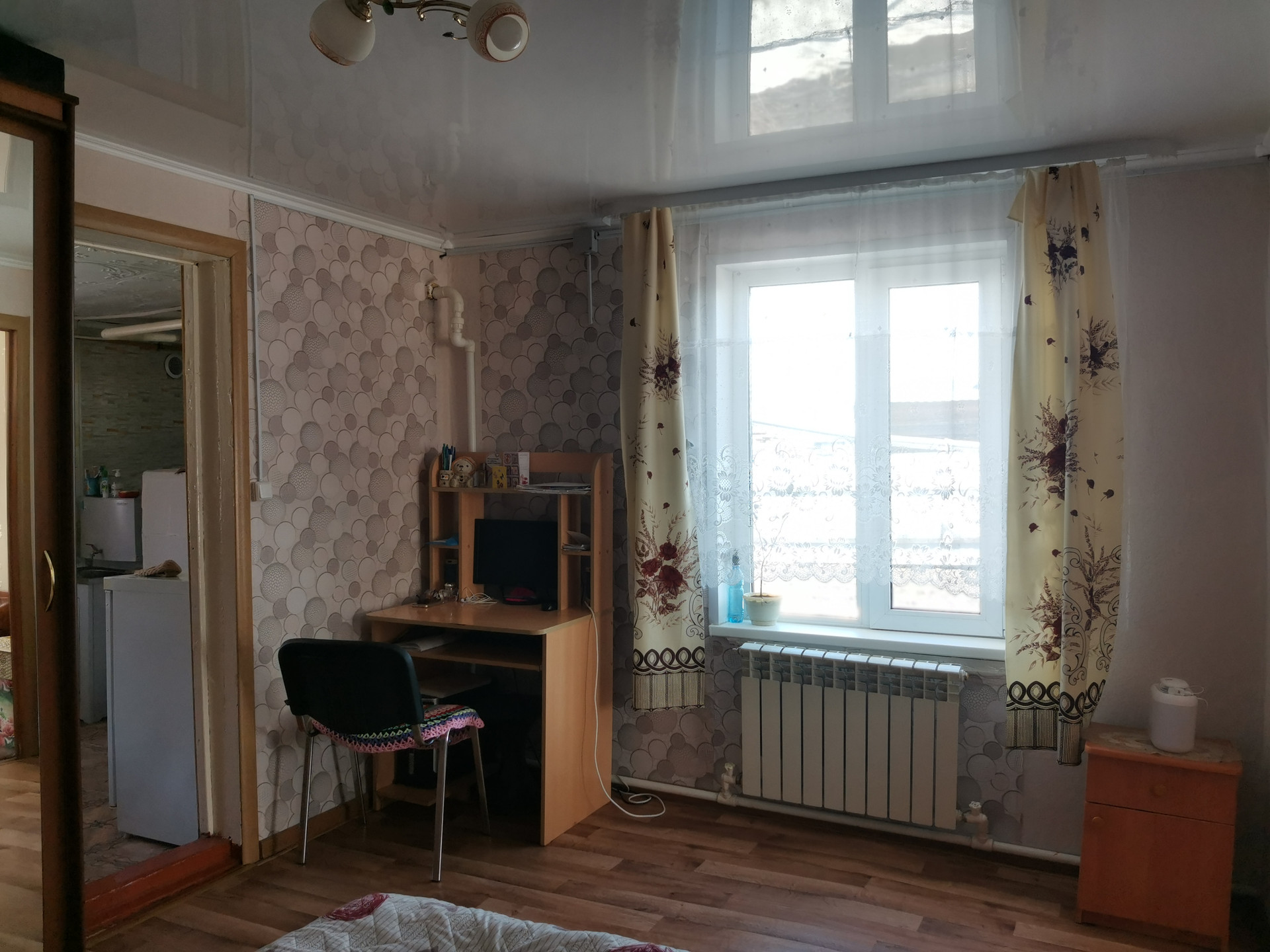 Просторная, светлая, теплая квартира в каркасно-насыпном доме с косметическим ремонтом: на полу линолеум, на стенах обои, натяжные потолки в комнатах, новые радиаторы отопления, заменена кровля. К дому подведены водоснабжение и газ. Установлены приборы учета на газ, воду, электроэнергию. Санузел в квартире. Окна и входная дверь - ПВХ. Квартира в состоянии - "заходи и живи".