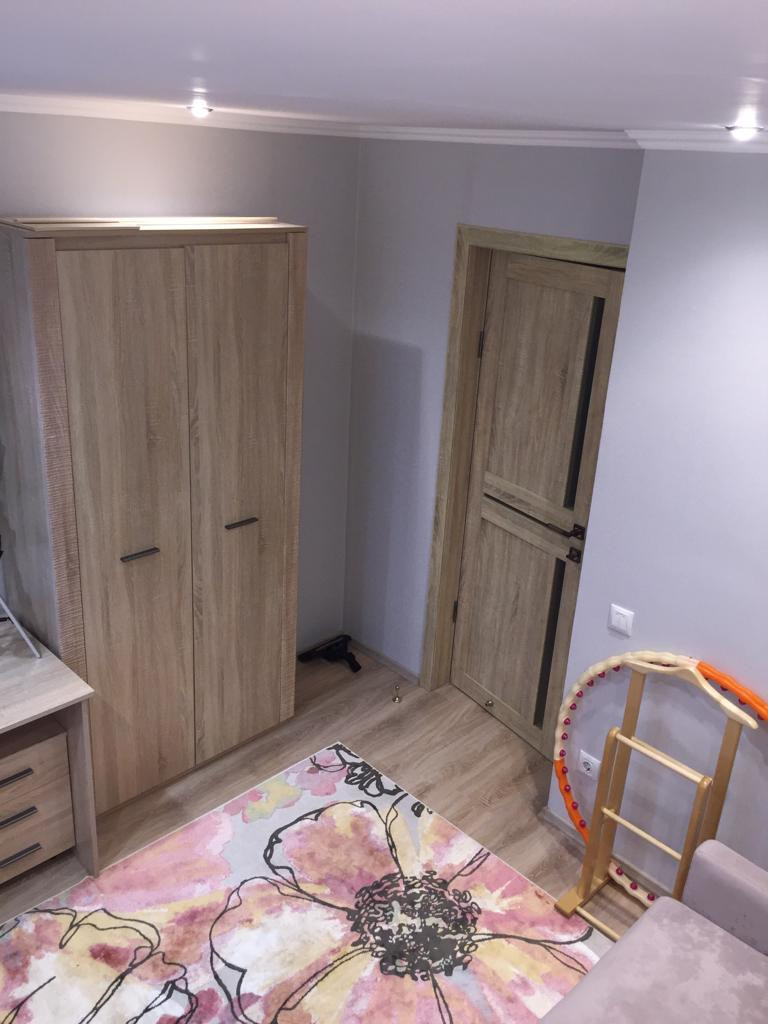 Квартира аккуратная, светлая, не угловая.  Окна выходят на обе стороны дома. Санузел раздельный, комнаты изолированные. Стены и полы выровнены, потолки - гипсокартон. Рядом с домом новая детская площадка. В шаговой доступности школа, магазин. Новым жильцам остается вся мебель, бытовая техника и гараж 4х6 метров, который расположен рядом с домом.
