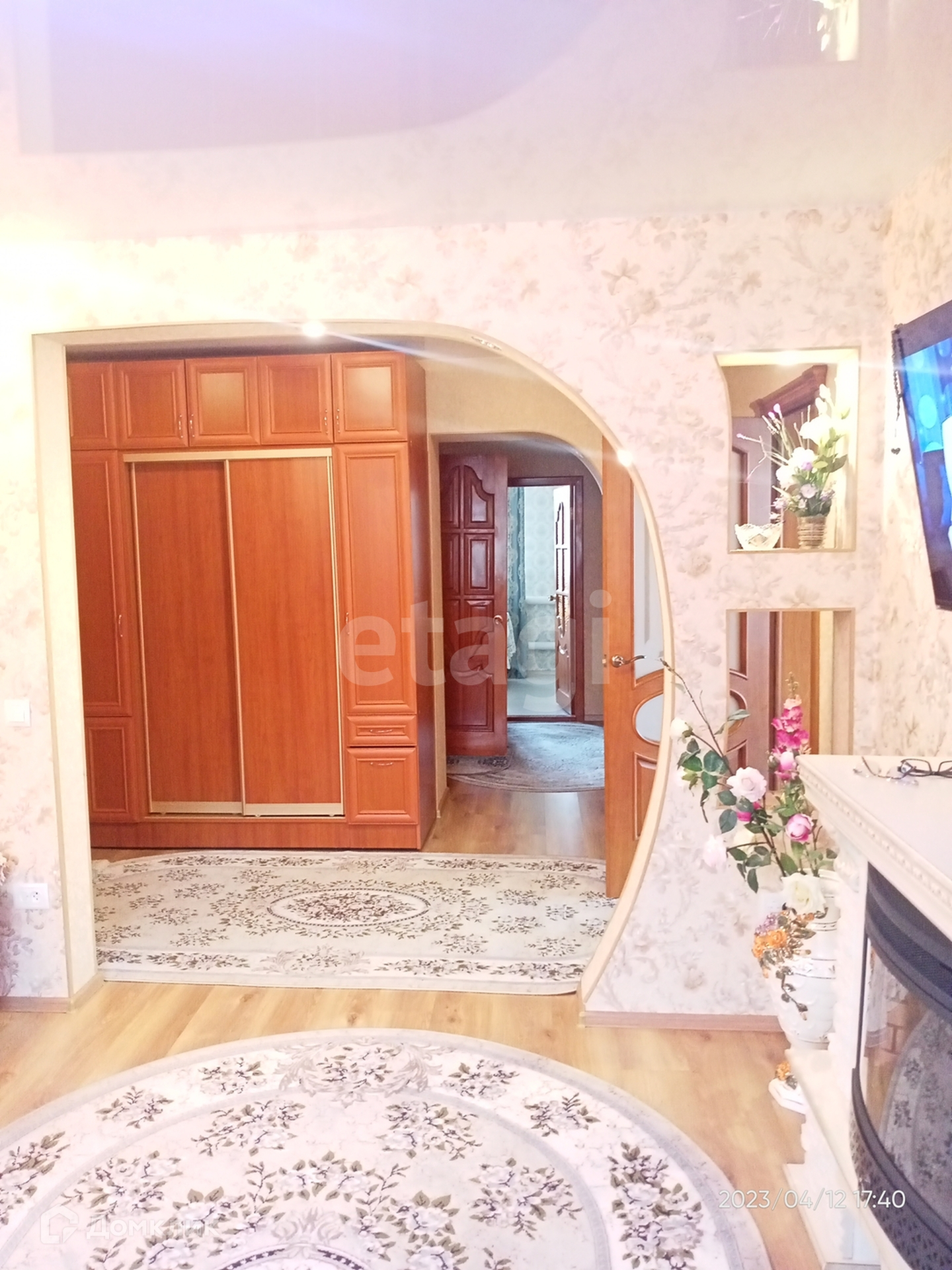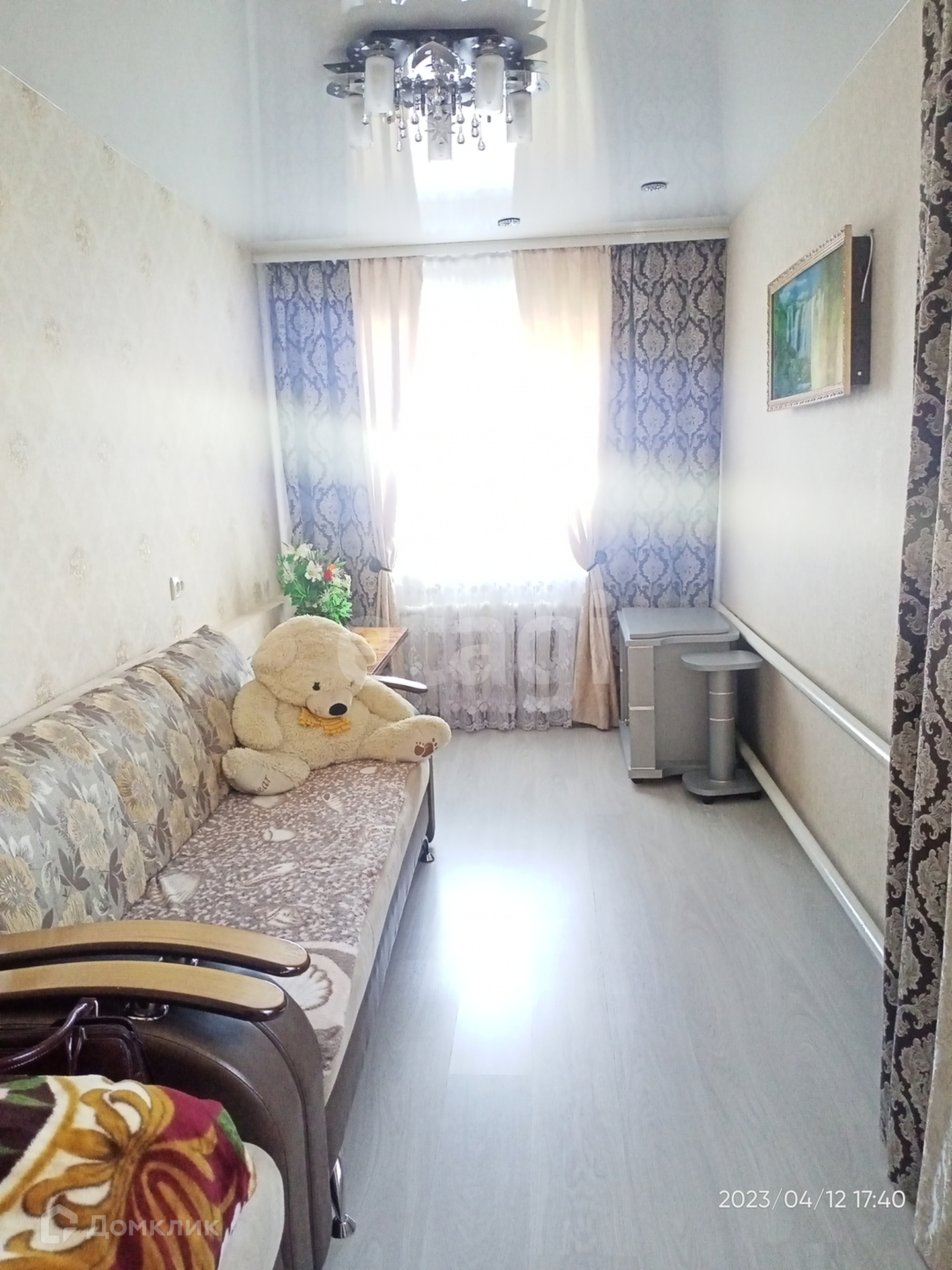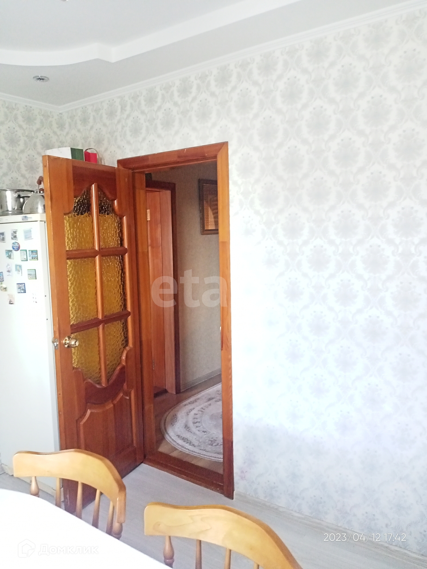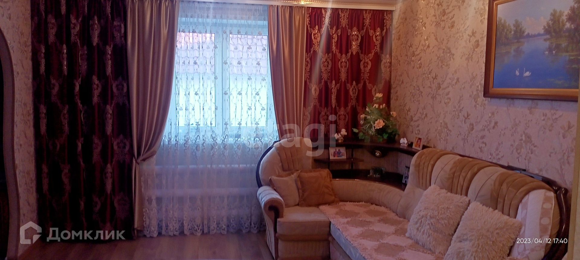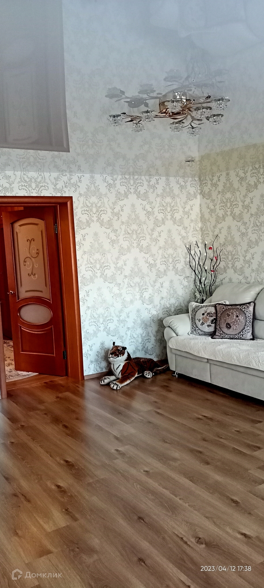 Гостиная,три комнаты,зал, кухня,столовая,коридор отделан деревом,санузел совмещён.