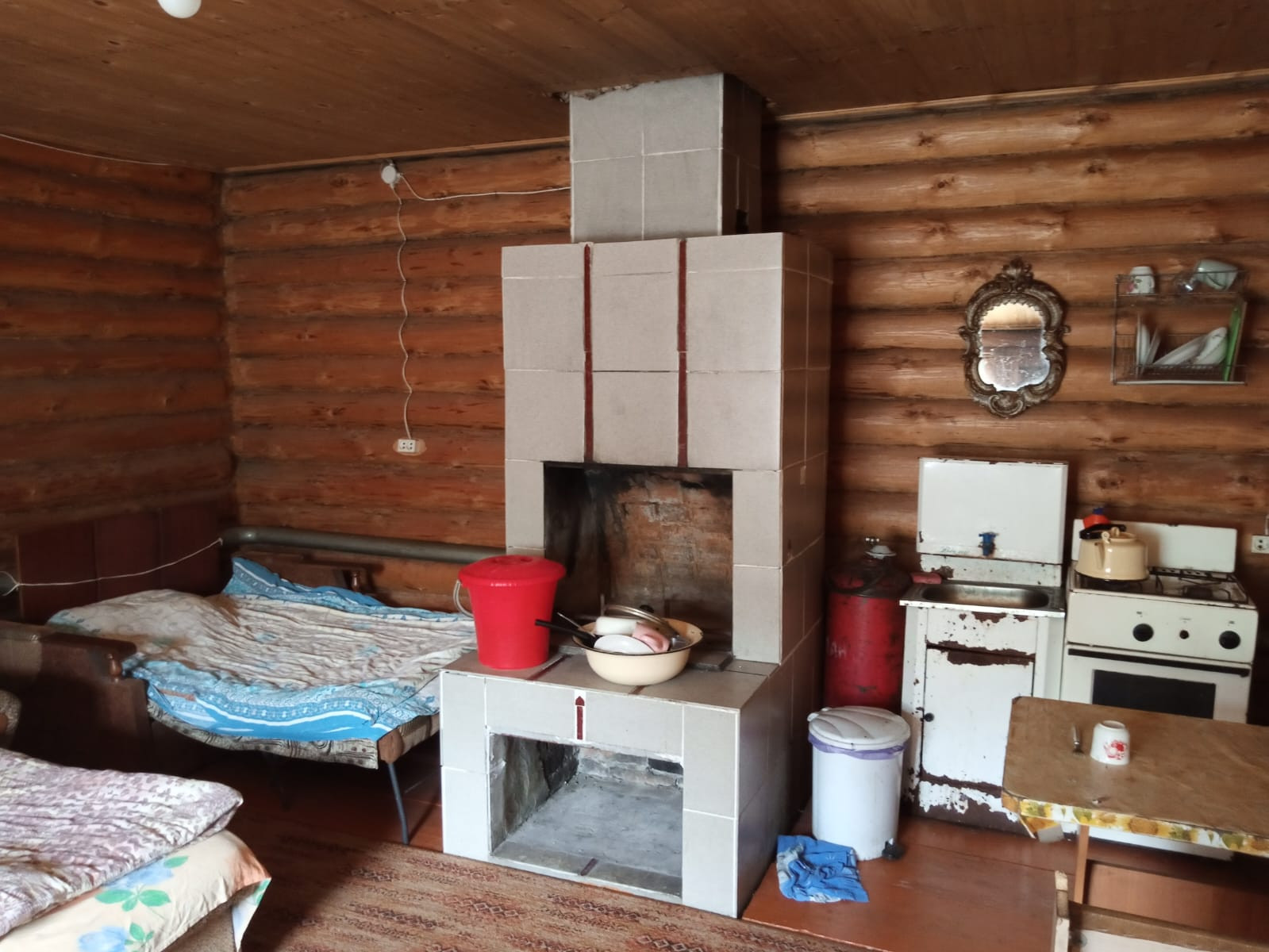 Продаю домовладение в р.п. Тевриз 225 кв.м. полезной площади. На территории расположены также 2 гостевые избушки с каминами. В доме 4 спальни + комната с камином и бильярдом. Санузел в доме. Баня с бассейном. Отопление печное. Холодный водопровод центральный + бойлеры. Канализация выгребная яма.
