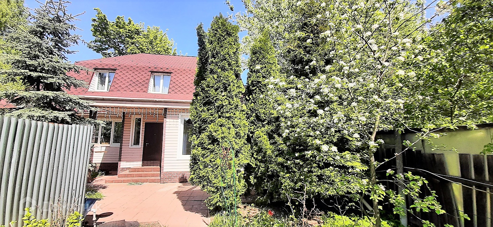 Участок ухоженный, плодовые деревья, туи, голубая ель.
