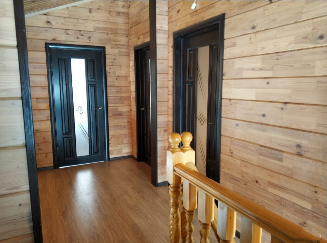 Продается двухуровневая квартира в двухэтажном 3-х квартирном доме 2014 года постройки. Материал стен - клееный брус. 1-й этаж: прихожая - 12 кв. м. высота 3,2 м., кухня - 17,1 кв,м. высота - 5 м. (второй свет), ванная - 5,5 кв.м. На всем первом этаже теплый пол. В ванной водонагреватель ARISTON 100 литров. 2-й этаж: балкон-коридор (вид на кухню) - 12,2 кв.м., комната - 16,7 кв.м., комната - 13,3 кв.м., кабинет - 4,6 кв.м., санузел - 5,5 кв.м. Весь второй этаж высота потолков 3,2 м., пол - ламинат. На кухне встроенный гарнитур. При желании можно настелить пол над кухней, получив таким образом ещё 17.1 квадратов. Центральное водоснабжение. Квартира теплая, уютная, очень светлая, хороший воздух (благодаря деревянным стенам). Единственный собственник.