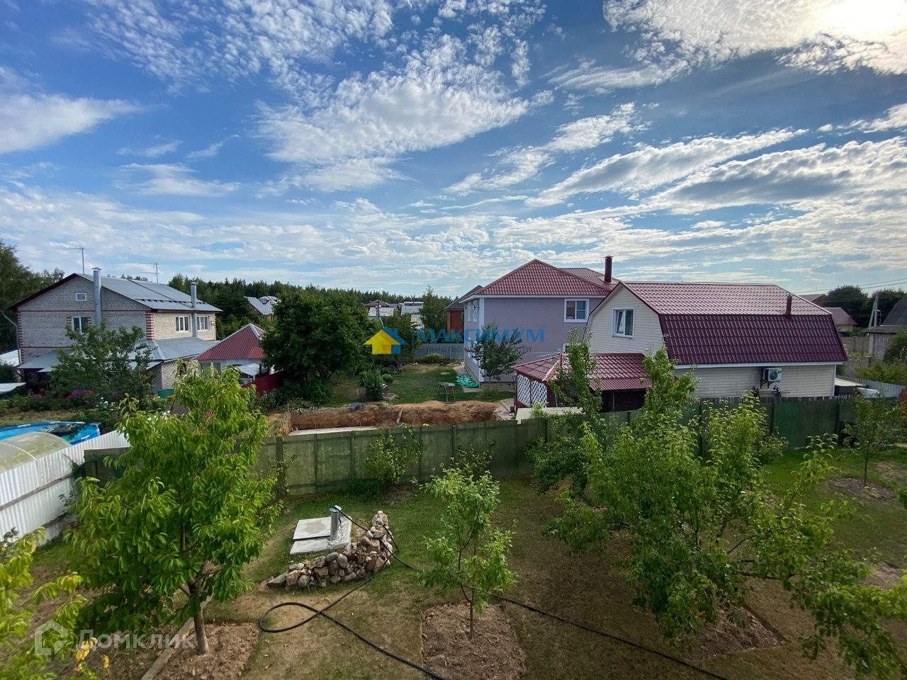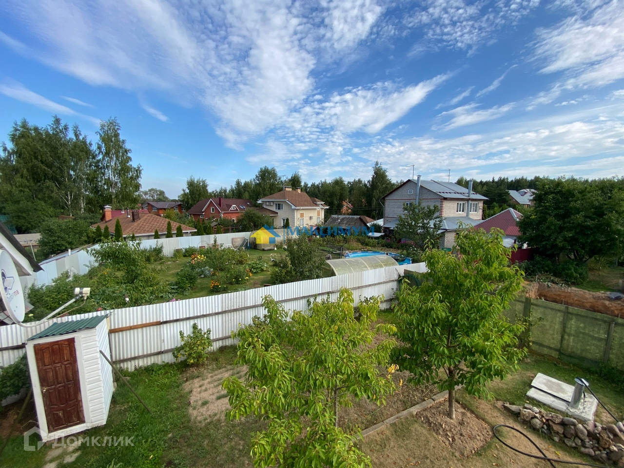 Участок ровный прямоугольник, соседи построены с трех сторон и все проживают постоянно. Ухоженный газон, высажены деревья и кустарники, отдельное пространство отведено грядкам.