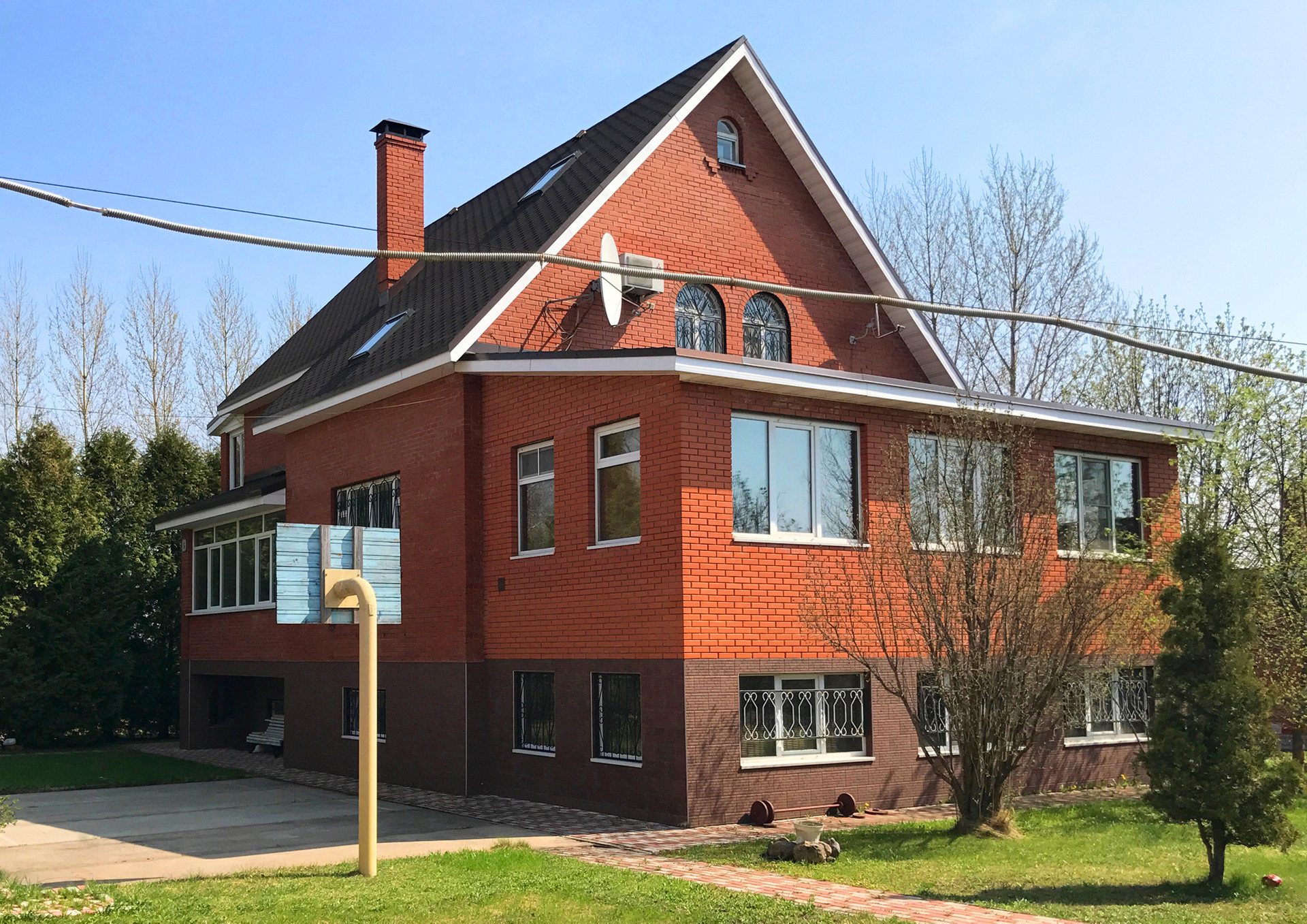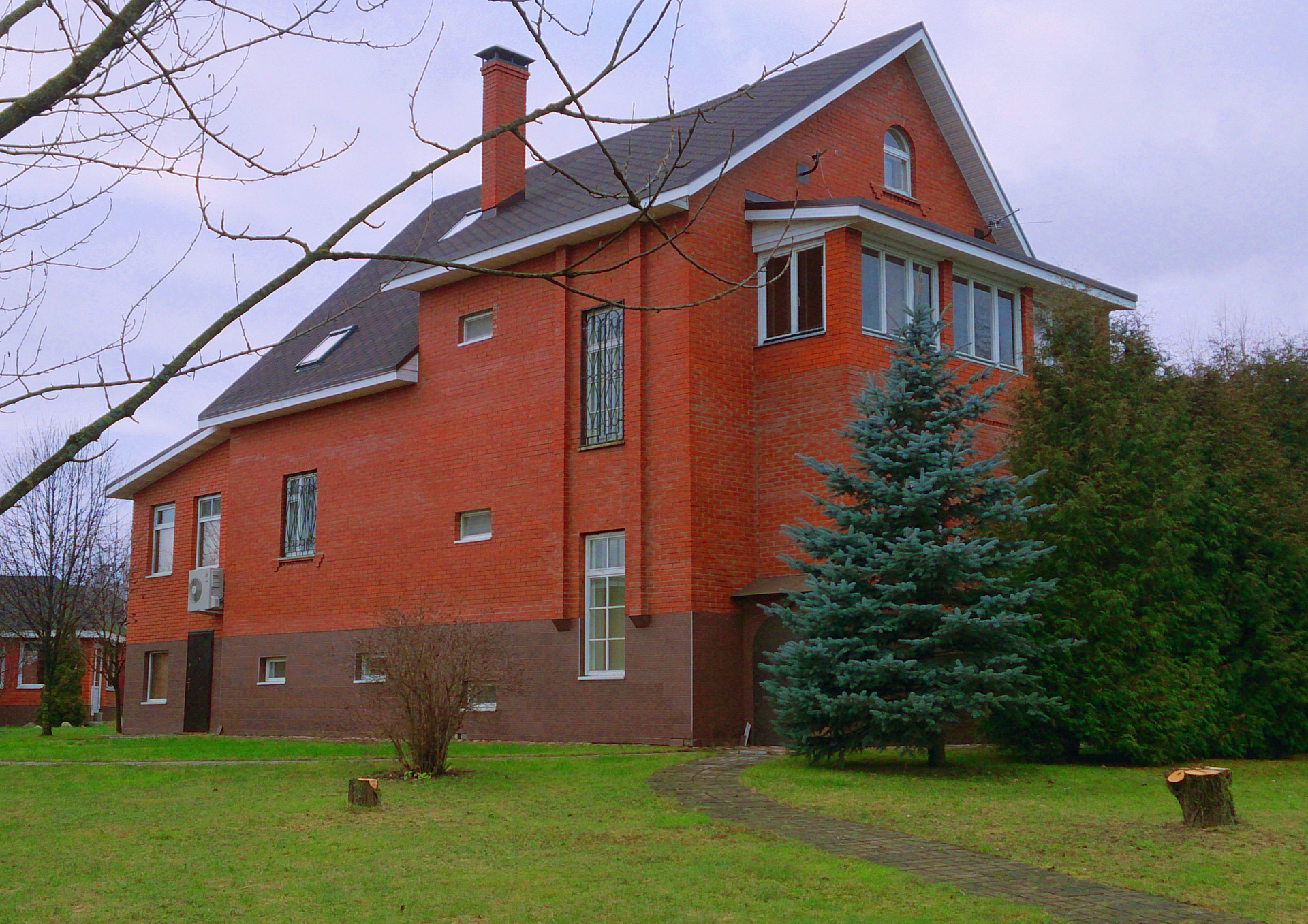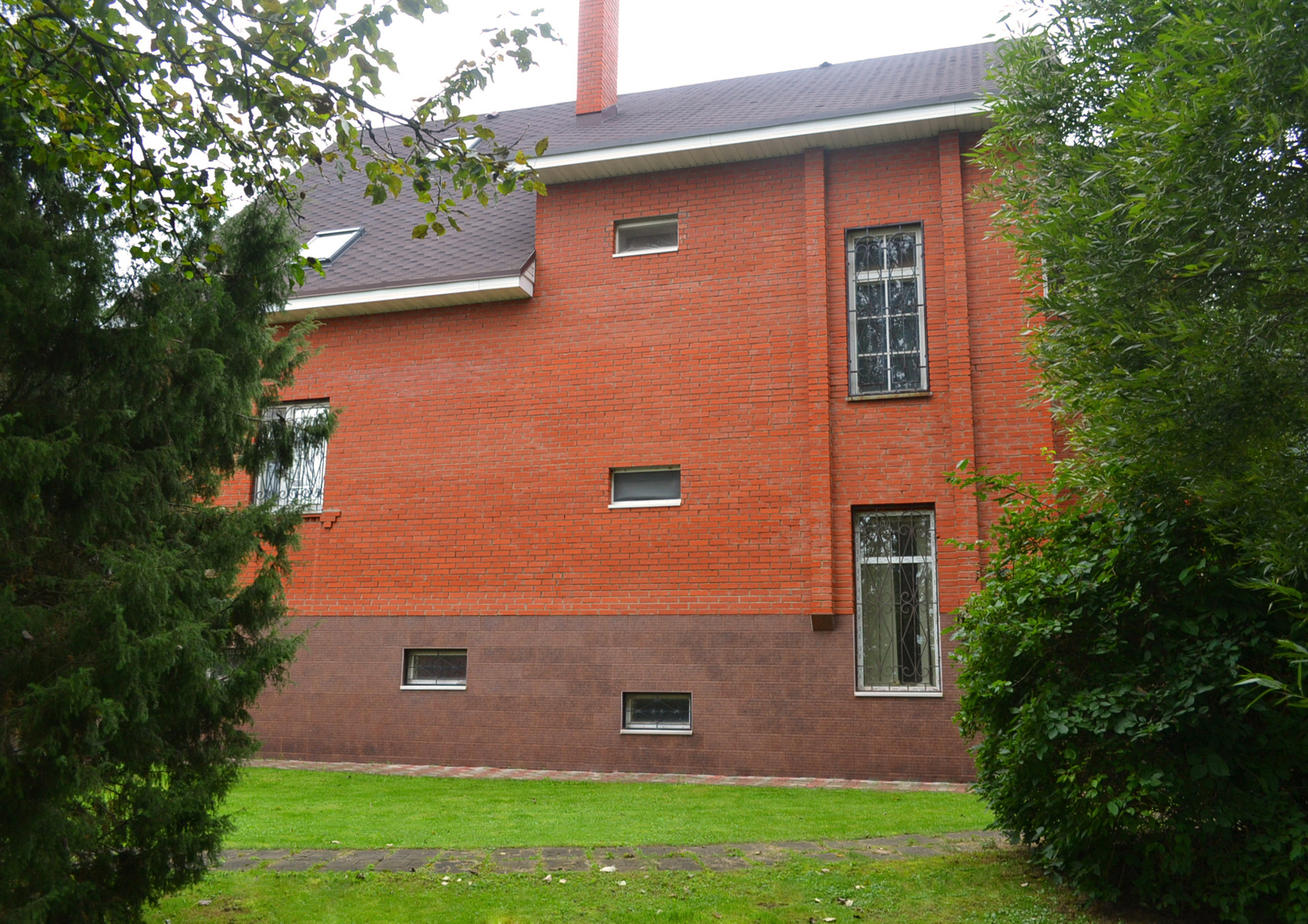 Дом кирпичный, 4 уровня. Два этажа, мансарда и цокольный этаж. Все коммуникации и удобства в доме. Общая площадь 384.3 кв.м., жилая - 142.6 кв.м..