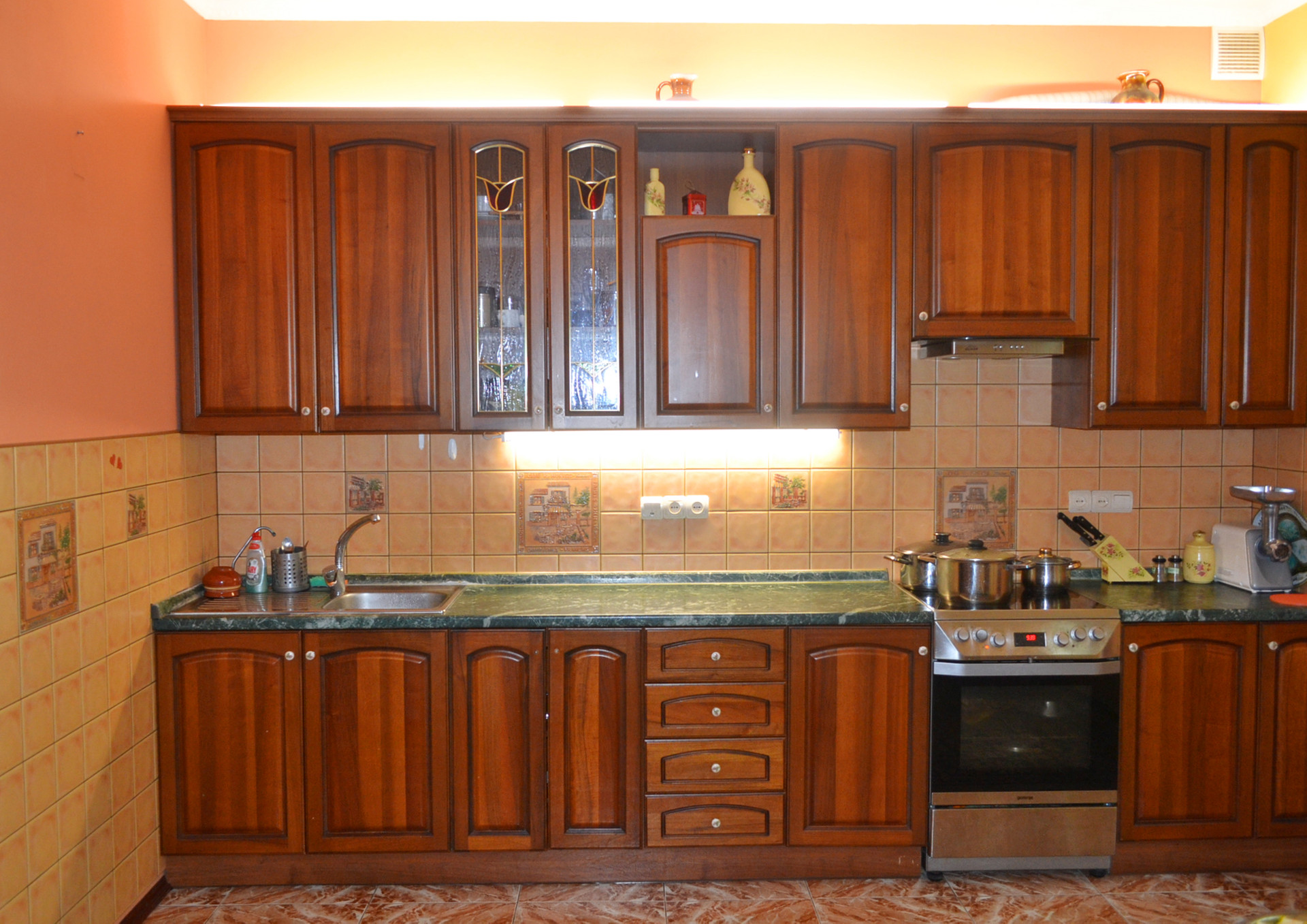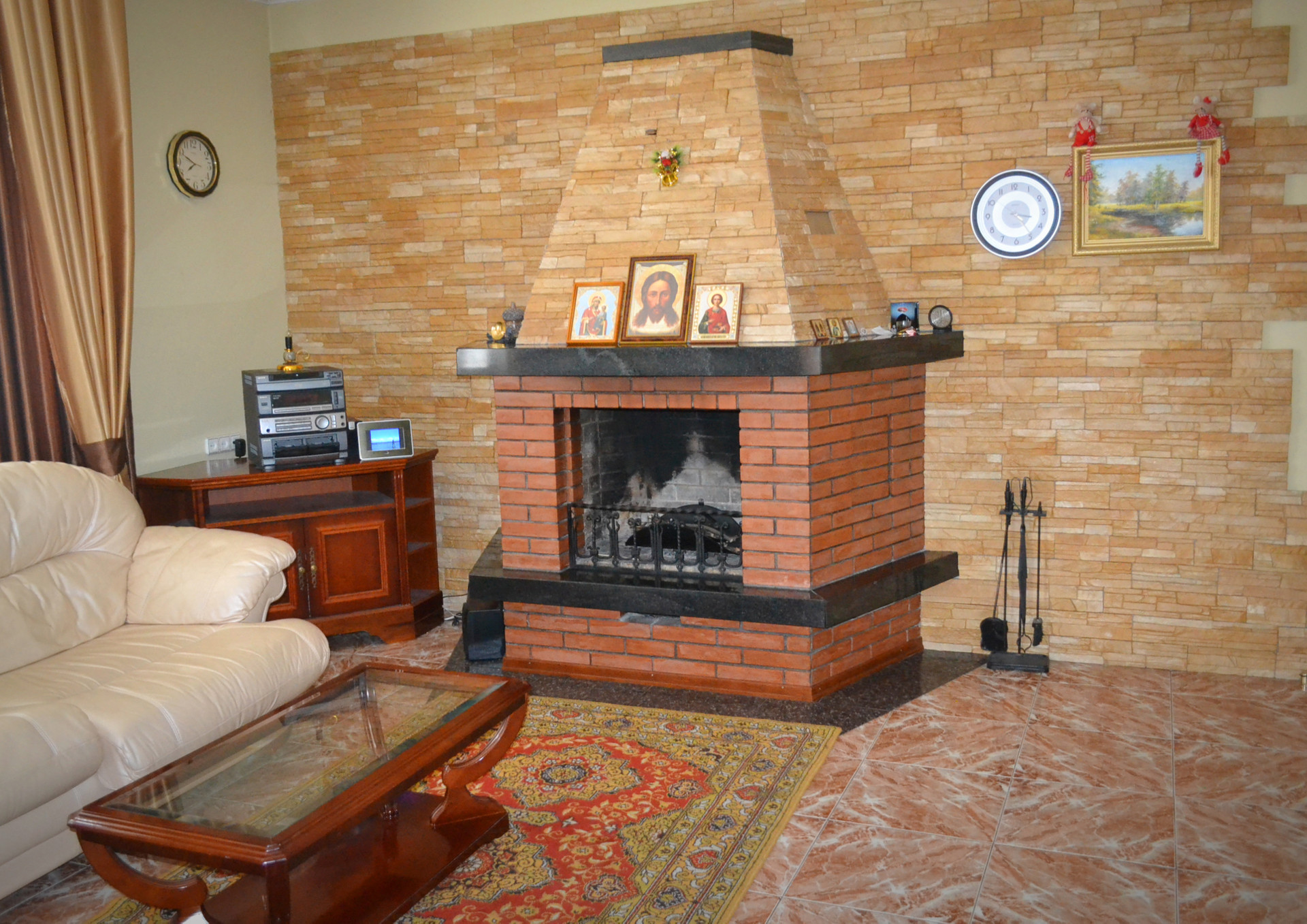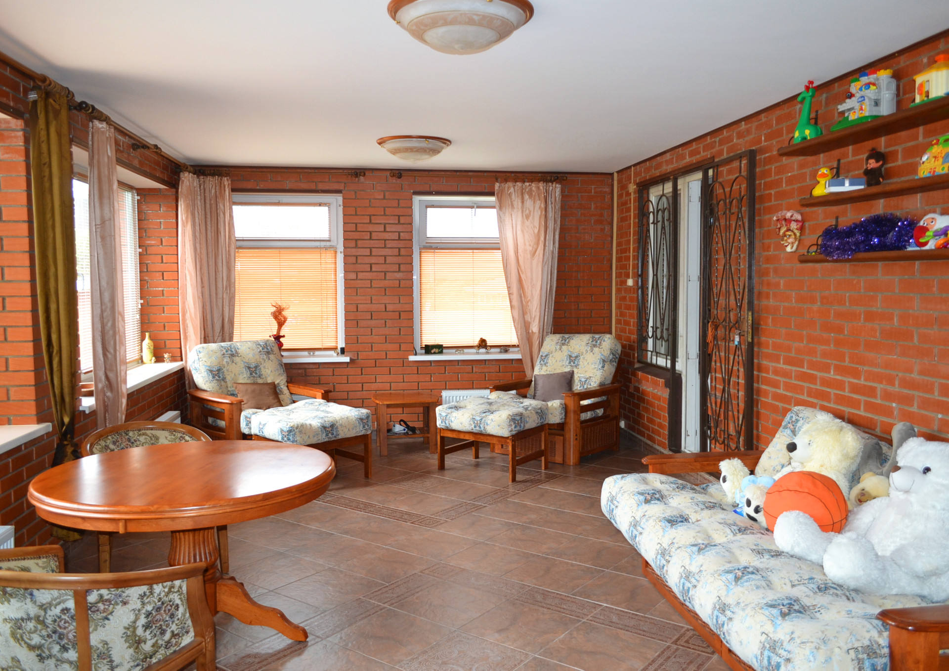 Дом кирпичный, 4 уровня. Два этажа, мансарда и цокольный этаж. Все коммуникации и удобства в доме. Общая площадь 384.3 кв.м., жилая - 142.6 кв.м..