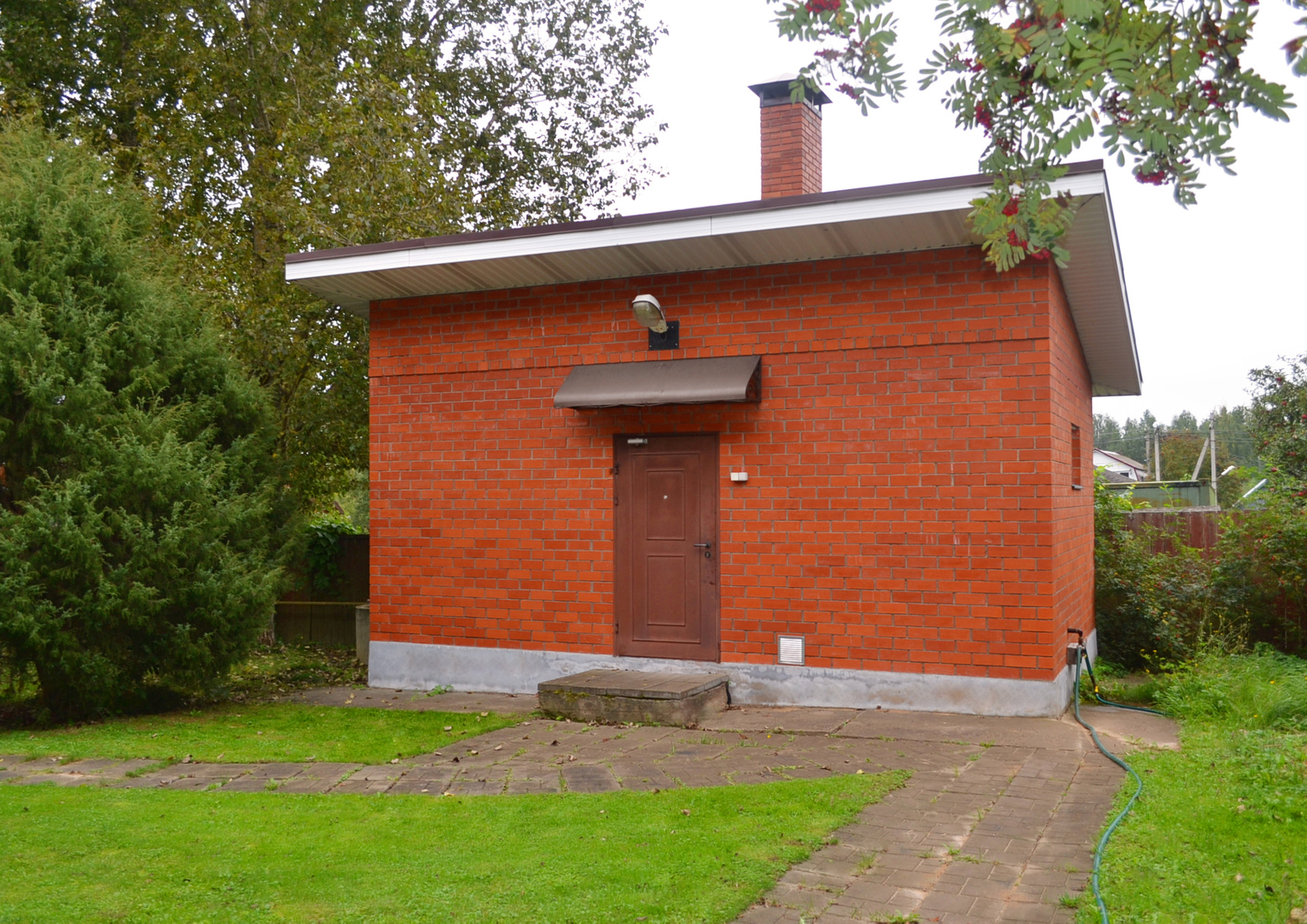 На участке есть дополнительные постройки, все кирпичные: беседка 28.5 кв.м., котельная 27.3 кв.м., большой гараж 77.6 кв.м. (перекрытия потолка плиты бетонные), баня 55.4 кв.м..
