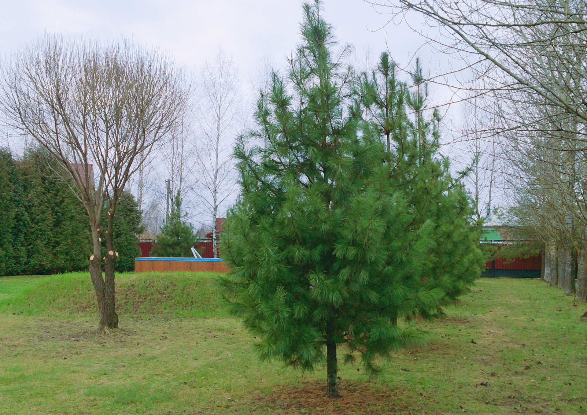 Участок с плодово-ягодными деревьями; яблоня, груши, сливы и маленький огород. Много лесных деревьев; кедровые сосны, березы, можжевельники, туи и т.д. Ландшафтный дизайн, все сделано со вкусом и любовью.