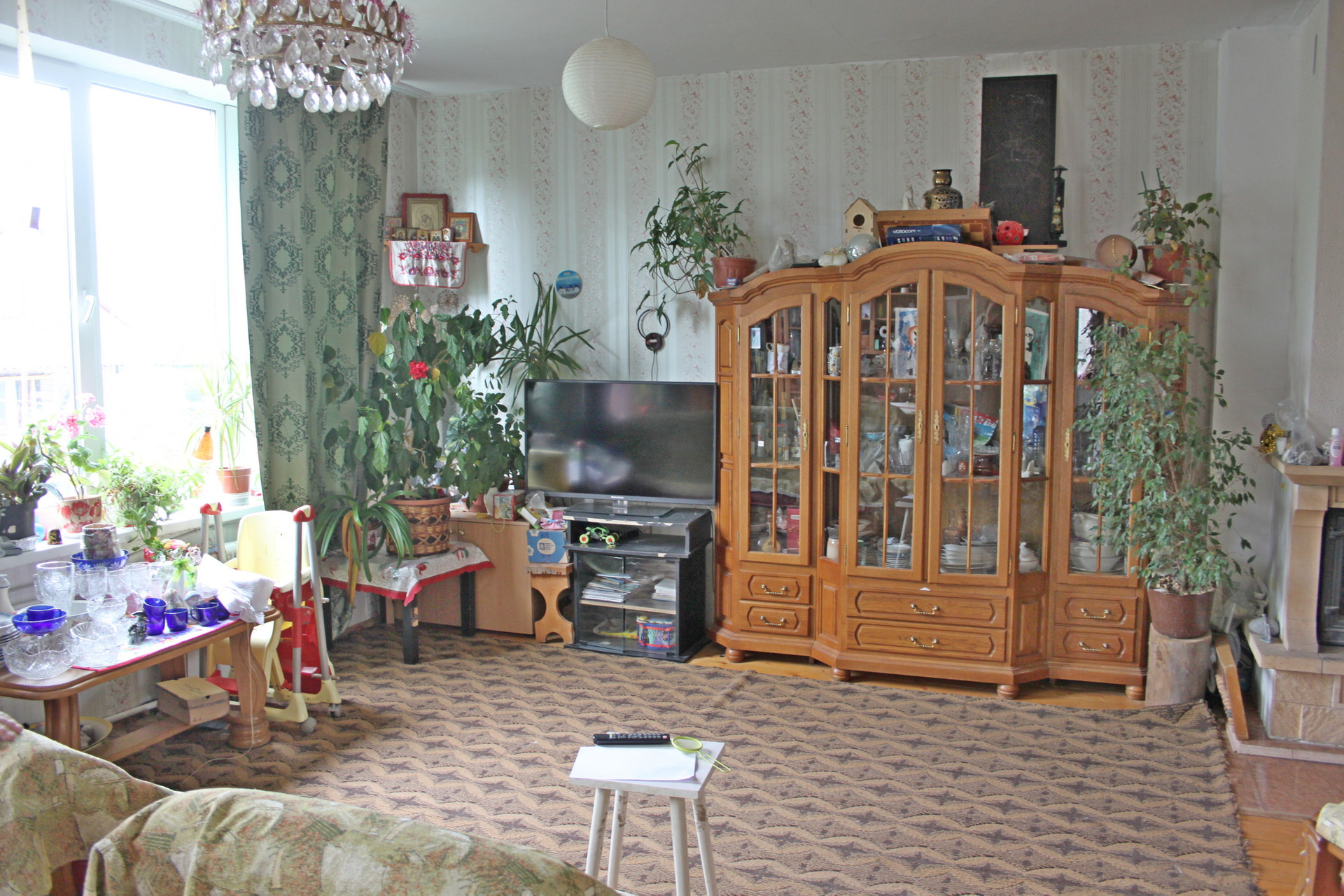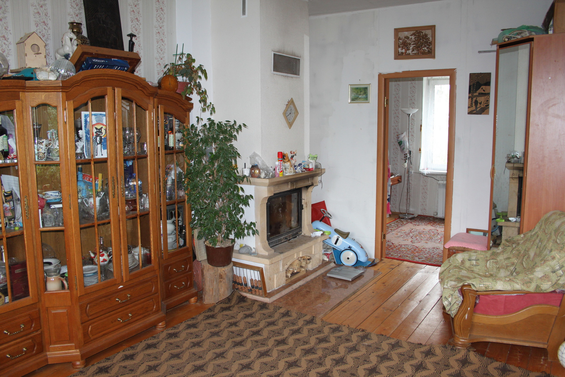 1 этаж: гостиная с камином, 2 спальни, кухня, санузел, веранда.