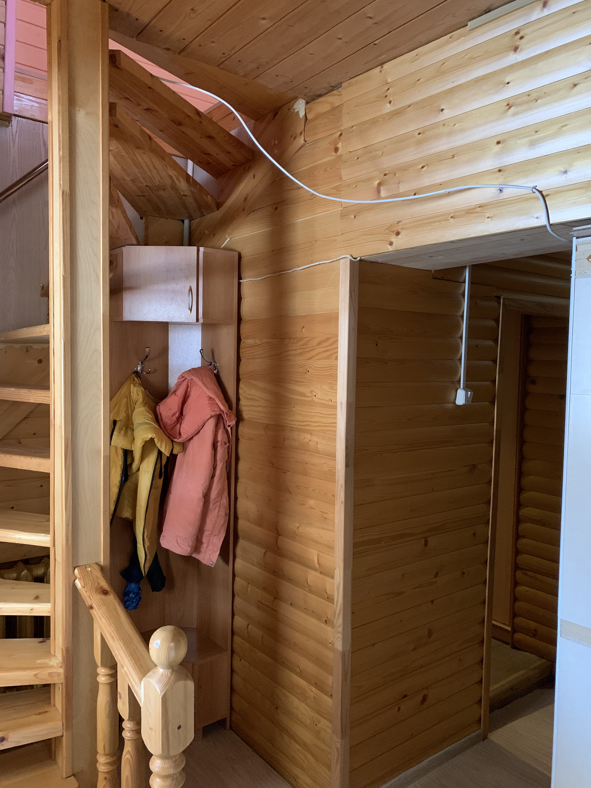 второй дом бревенчатый трехэтажный для круглогодичного проживания 2008 года постройки. Дом полностью с отделкой, готов для проживания. Отапливается газом (газовый котел), центральный водопровод, канализация, электричество. Фундамент ленточный, стены бревно, внешняя отделка - вагонка. На первом этаже: гараж, кухня, две спальни, гостевая комната, прихожая -гостиная, совмещенный санузел, бойлерная с газовым котлом. На втором этаже две комнаты. На третьем этаже одна комната.