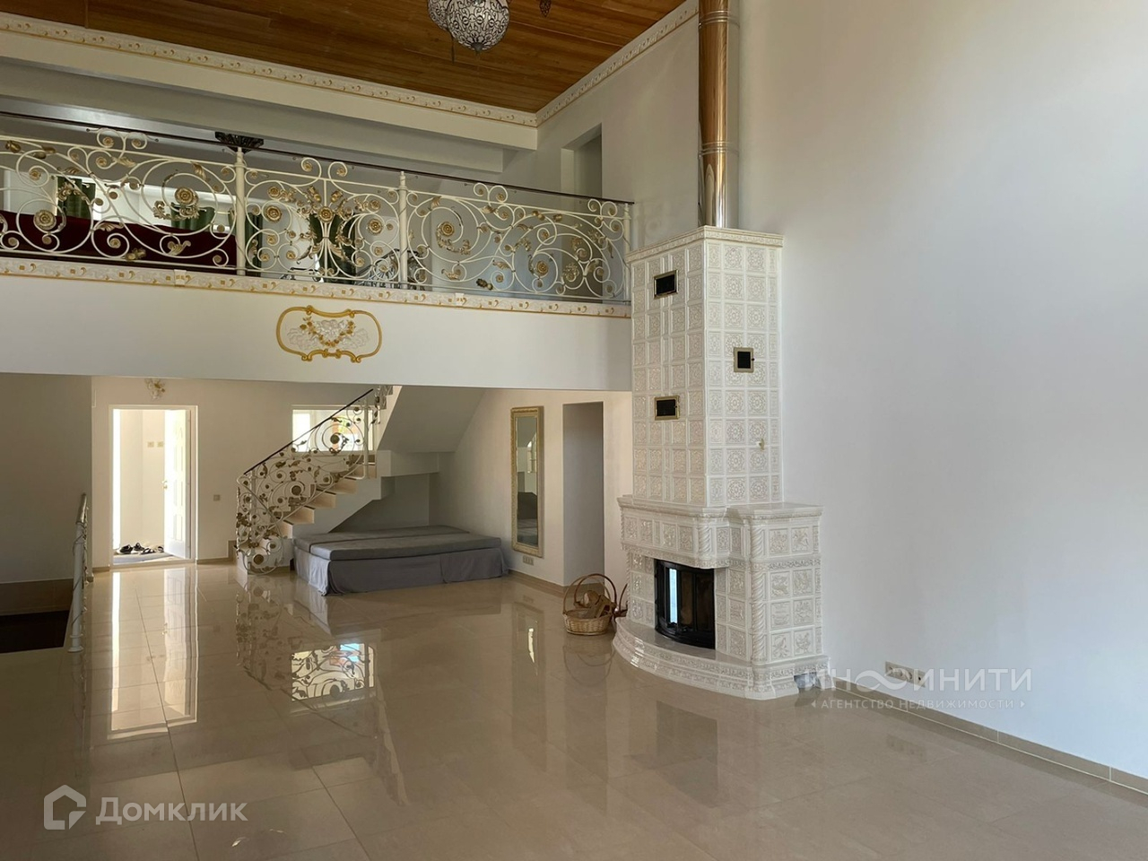 Дом выполнен из высококачественных строительных материалов: в отделке использовано много натурального камня, ценных пород дерева.