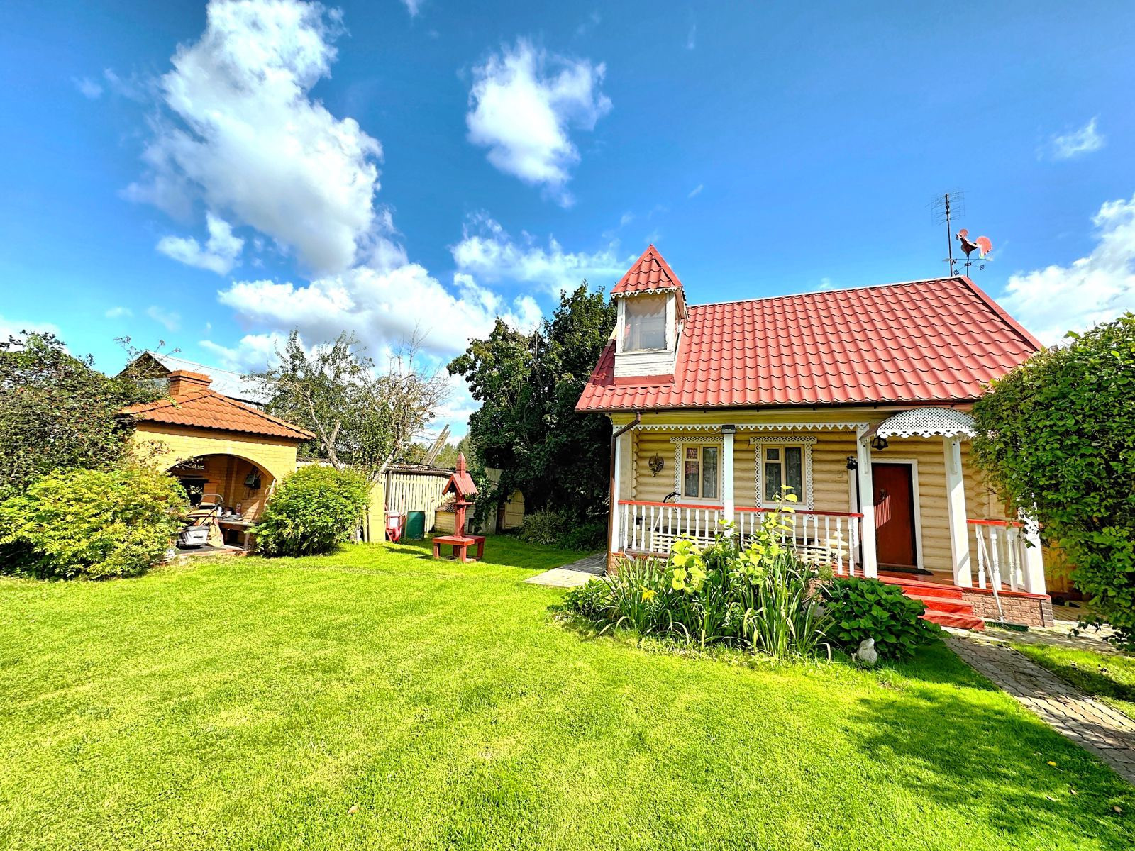 Продается 1/2 дома с отдельным входом на ухоженном участке 13 соток в пос. Тучково. Гостевой дом, беседка, зона барбекю. Всё есть на фото.