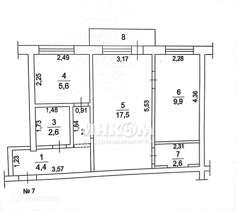 Общая площадь 44.3 м2