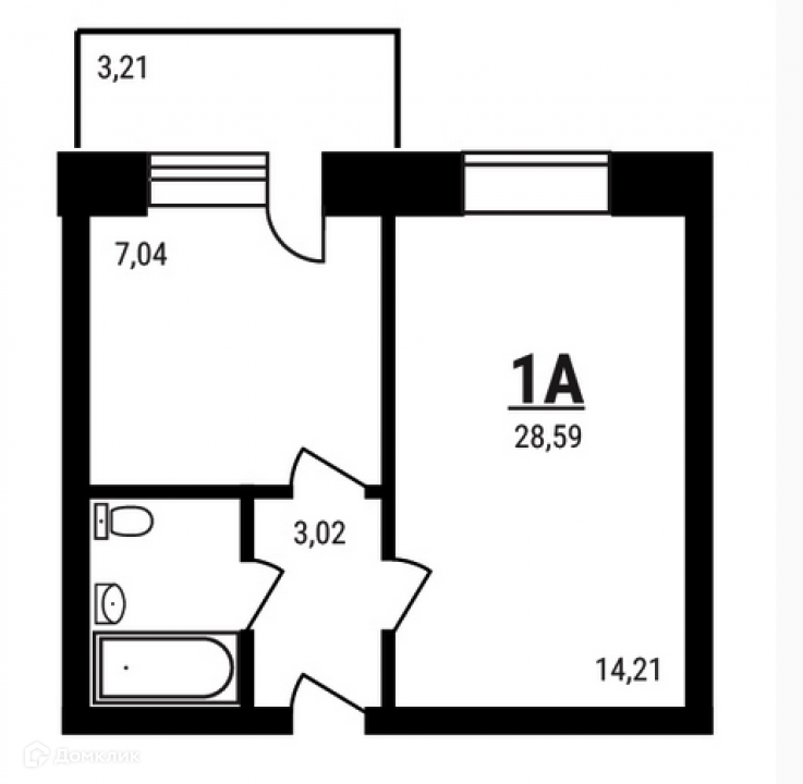 Общая площадь 28.59 м2