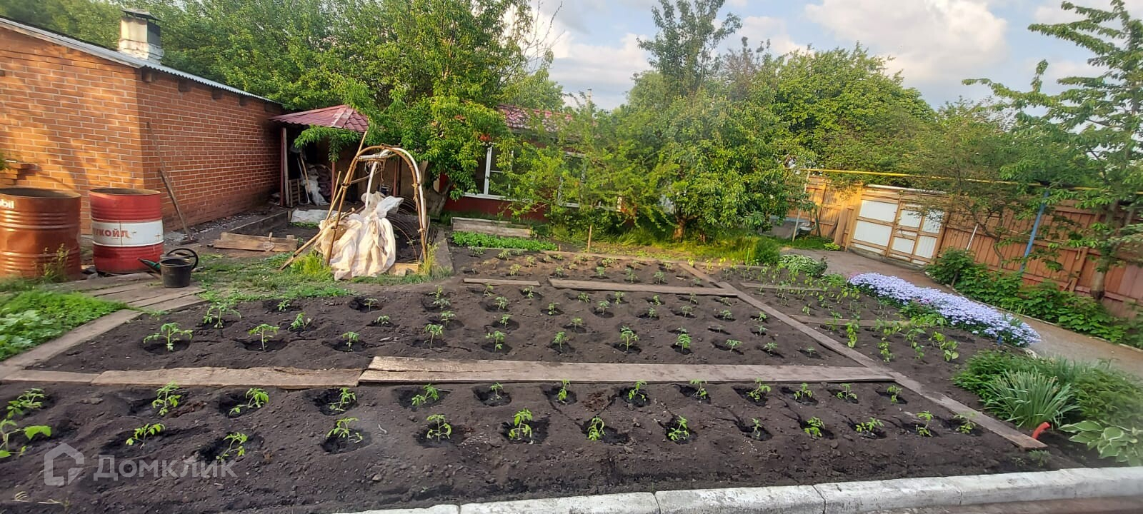 более 40 плодовых деревьев (яблоня,груша,слива,алыча,виноград,смородина,крыжовник,вишня,черешня........). Рядом с домом расположен пруд для ловли рыбы,ореховая роща,магазины,больница.