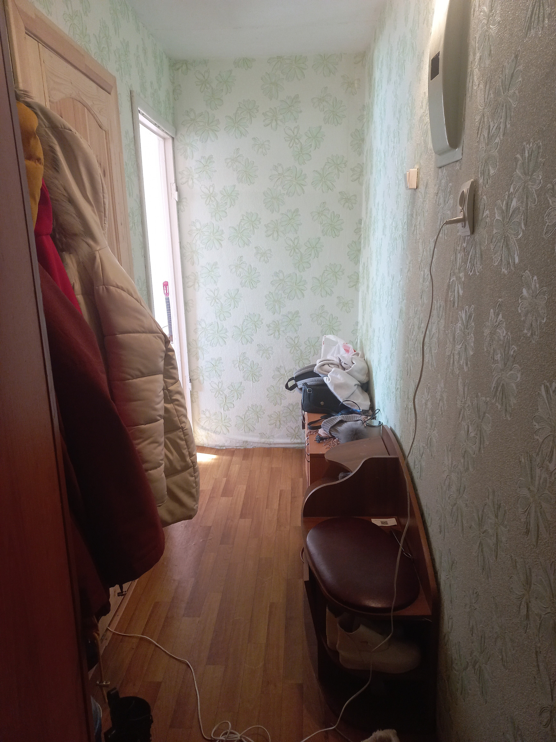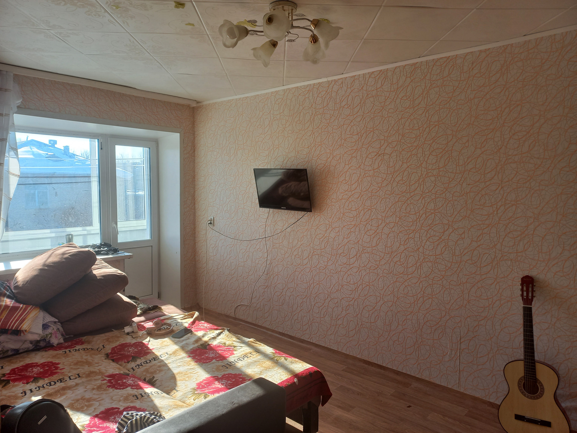 В квартире сделан ремонт, установлены стеклопакеты, балкон застеклен, на полу линолеум.