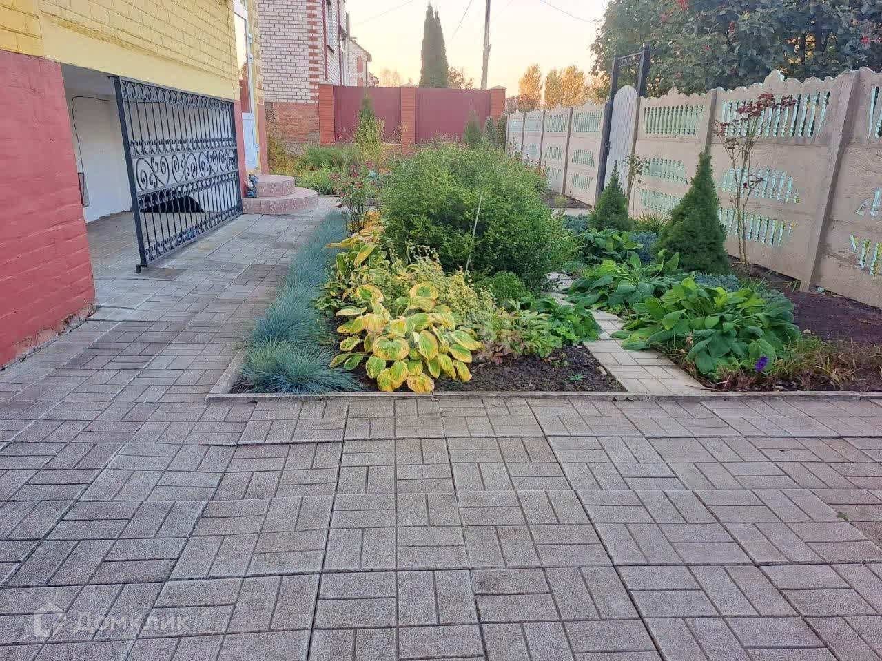 Двор и дорожки в сад , уложены плиткой.