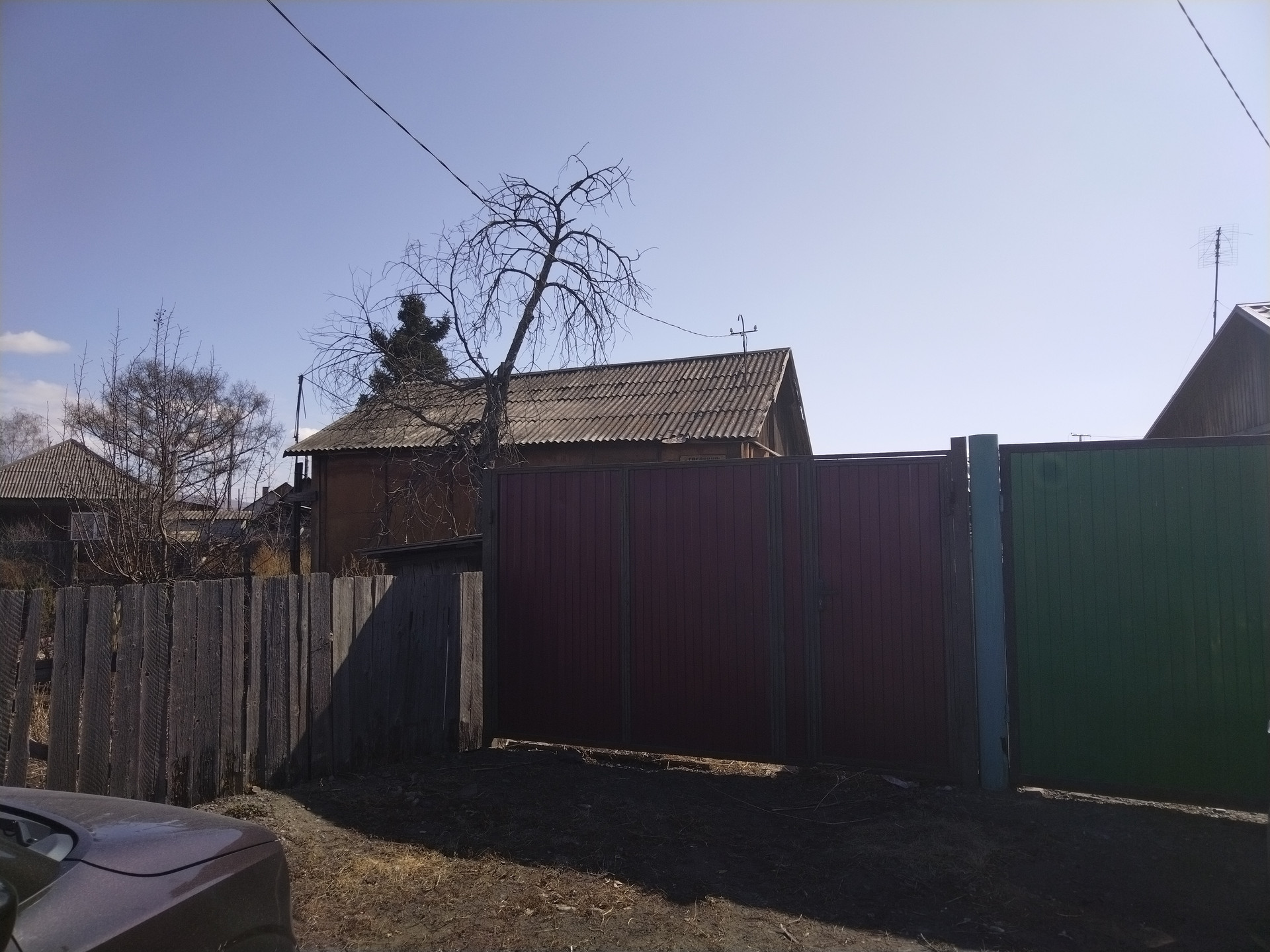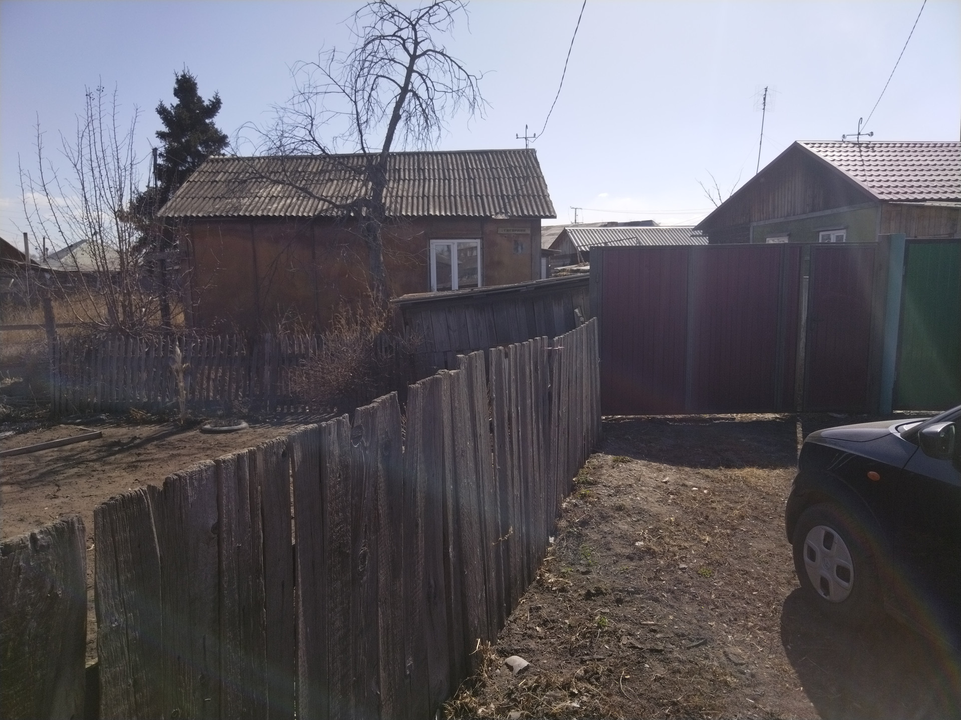 Участок имеет неправильную форму, но места достаточно, для овощных грядок, имеются фруктовые деревья.