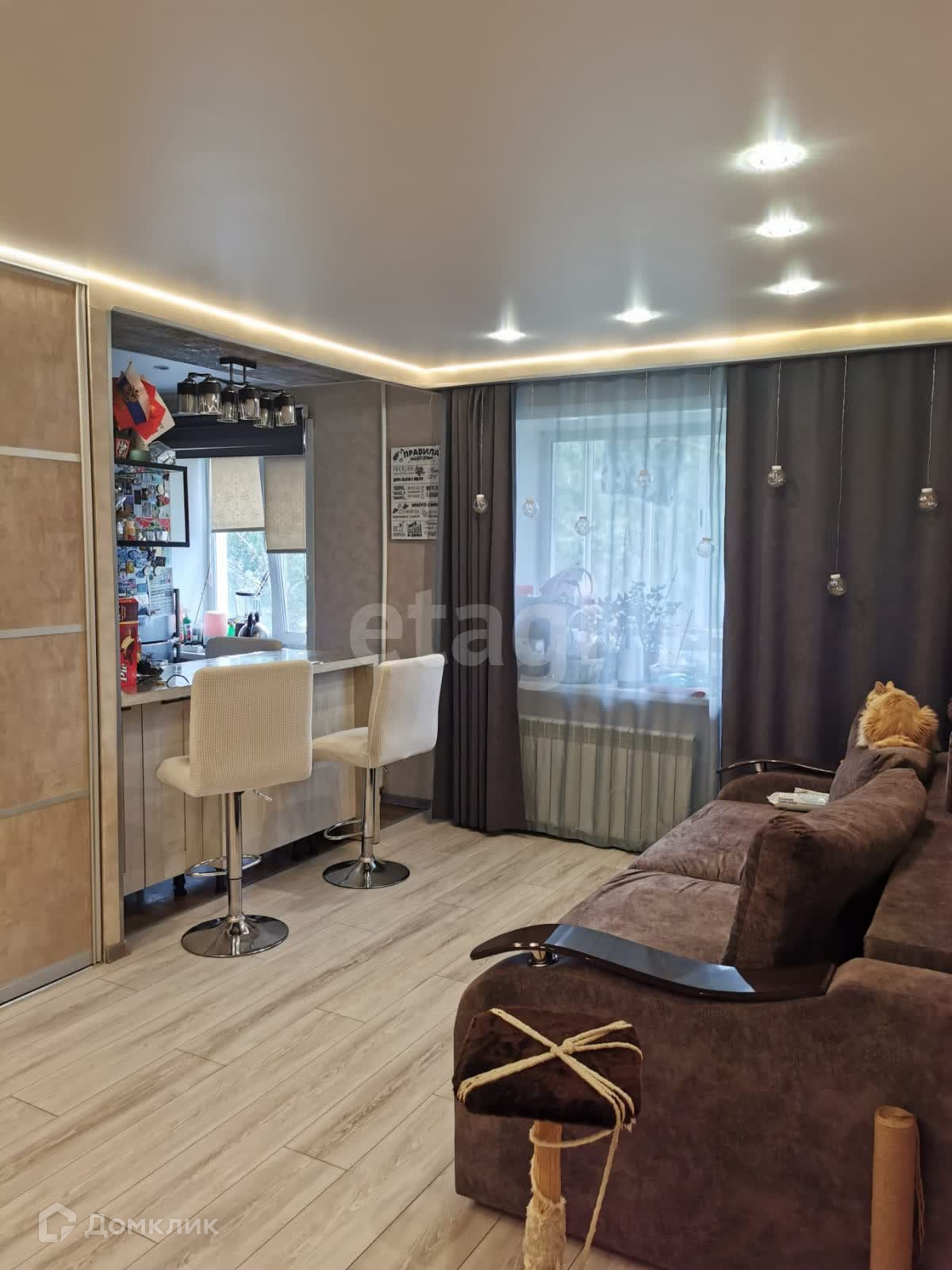 Дом имеет удобное расположение, все рядом: магазины, кафе, остановки общественного транспорта. В квартире выполнен современный ремонт, стены выровнены, заменена электрика и сантехника, сделана перепланировка (узаконена). Ремонт в квартире сделан в светлых тонах: обои, ламинат, линолеум, потолки с подсветкой, современные межкомнатные двери.