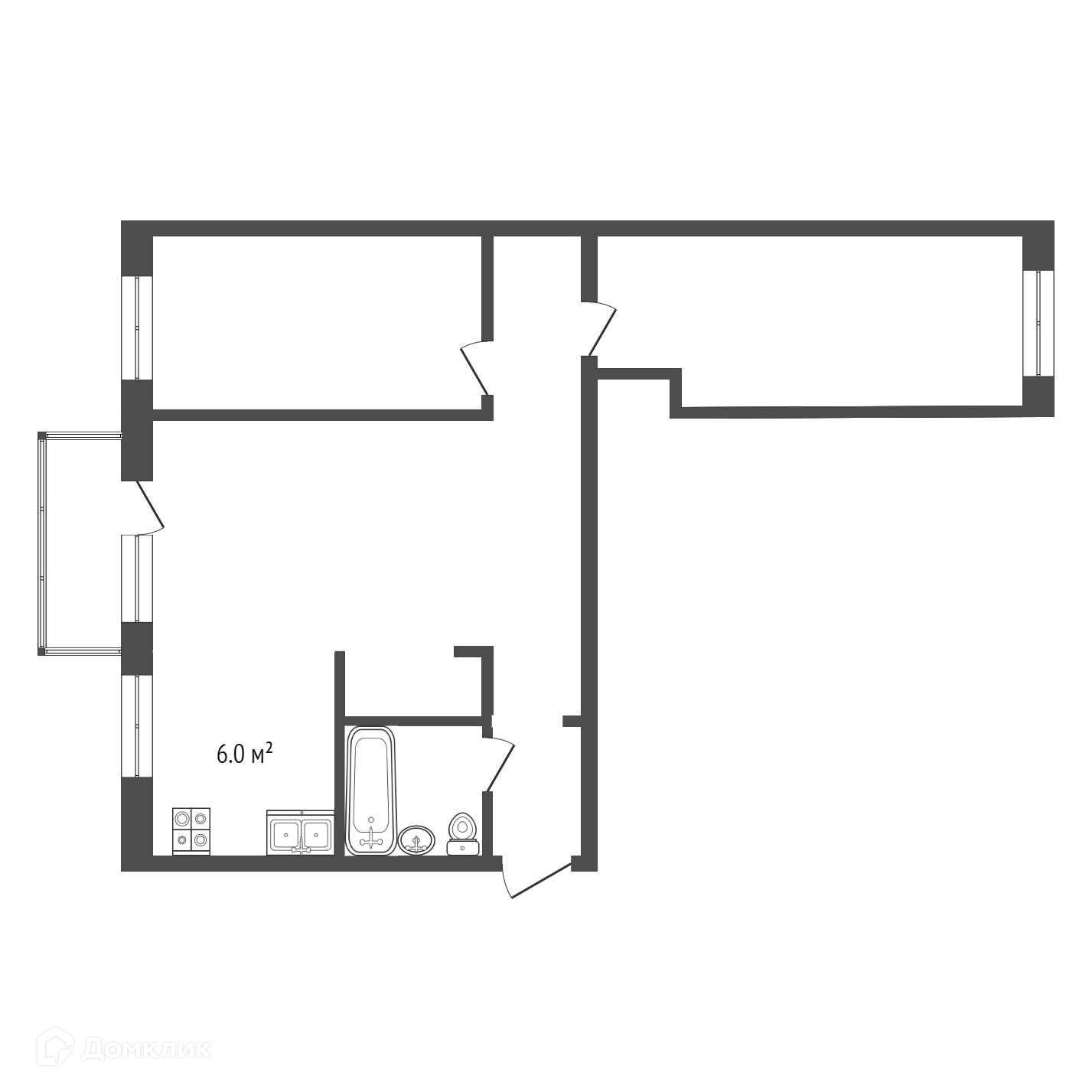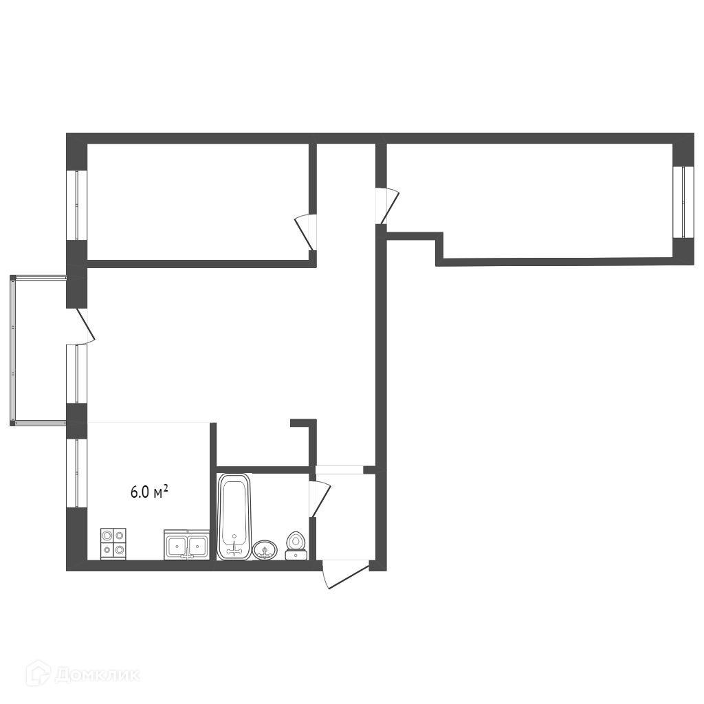 Общая площадь 57.6 м2