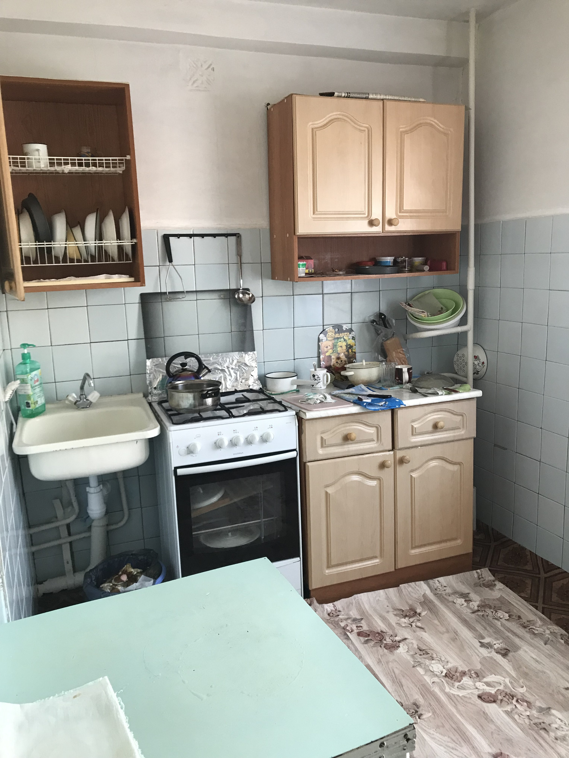 Вся мебель остаётся в квартире: два телевизора, шкафы, кровати, диван и кресла, кухонный гарнитур, столы, из бытовой техники: газовая плита, холодильник, стиральная машинка.