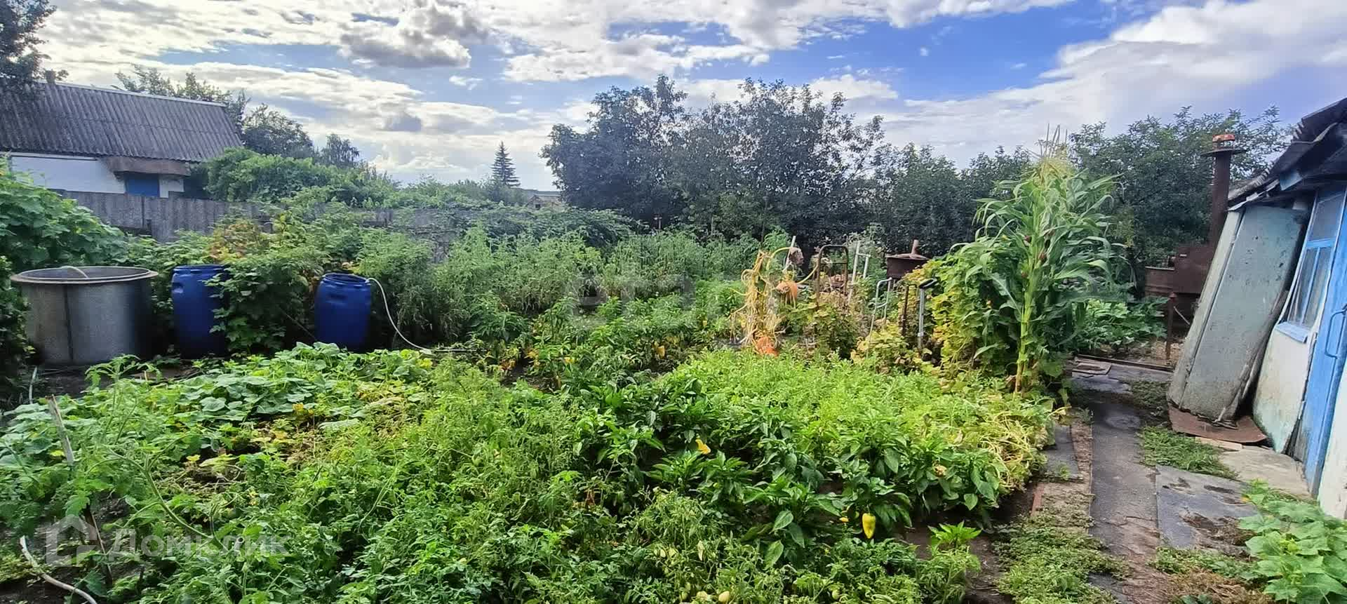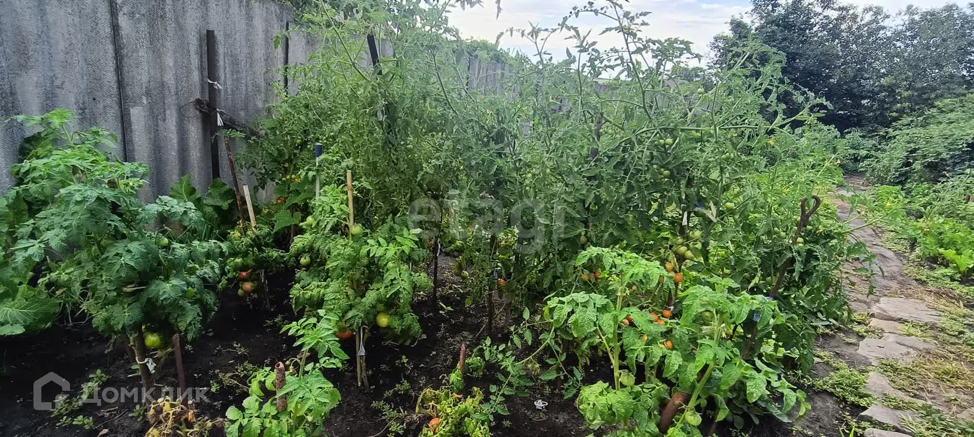 На участке растут фруктовые деревья и кустарники. За домом имеется свой небольшой огород. Для хранения урожая есть подвал.