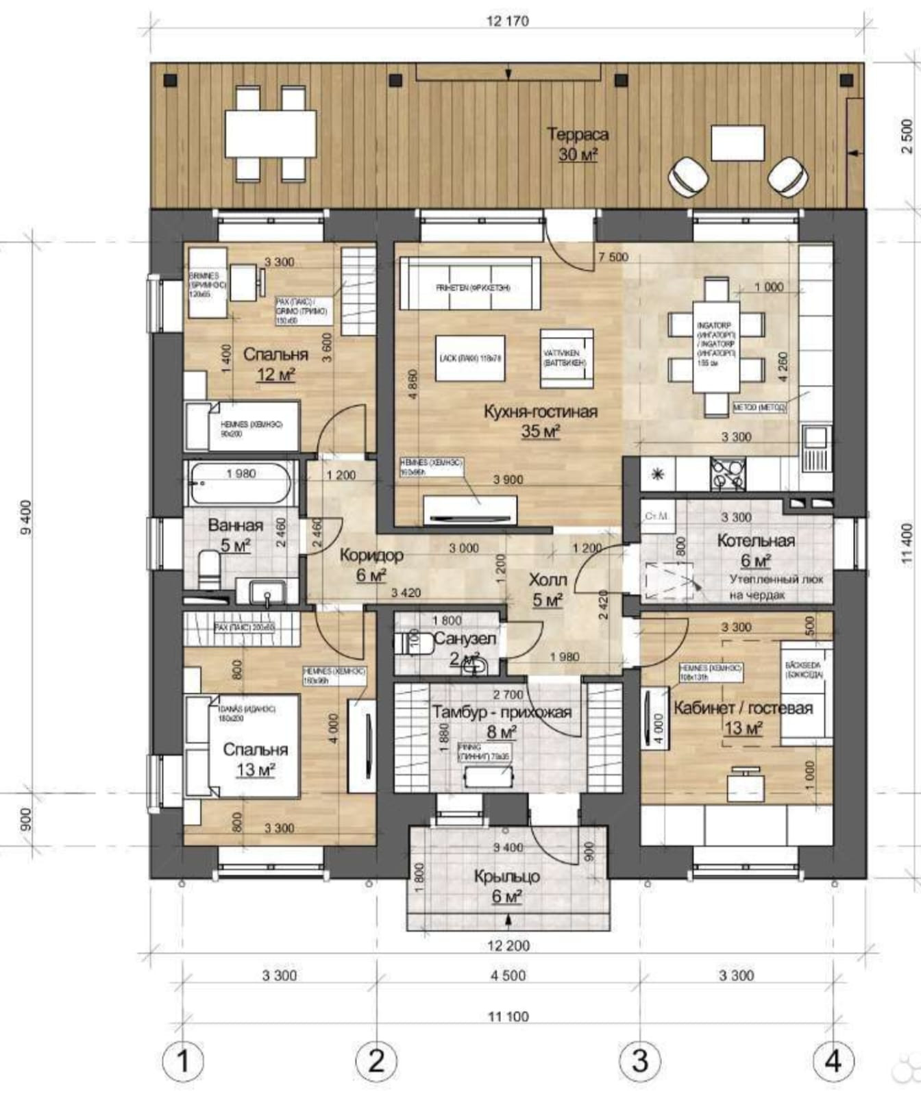 В подарок проект небольшого одноэтажного дома (архитектурный и строительный разделы).