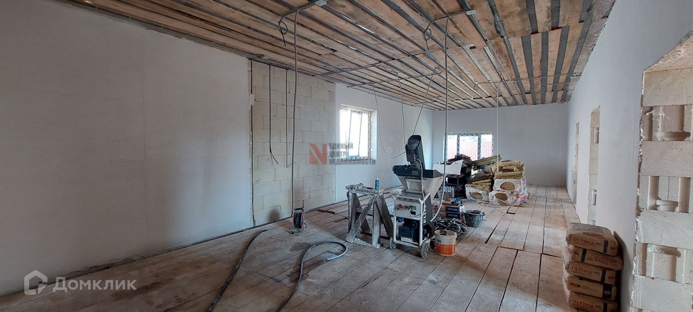 РЕМОНТ в готовом к сдаче доме - улучшенная предчистовая отделка, на полу линолеум, стены выровнены под маяк гипсовой штукатуркой, выведены подрозетники, выводы под ТВ и вытяжку, полностью выполнена разводка всех коммуникаций. Натяжной потолок по всему дому с точечным освещением, отделка санузла плиткой.