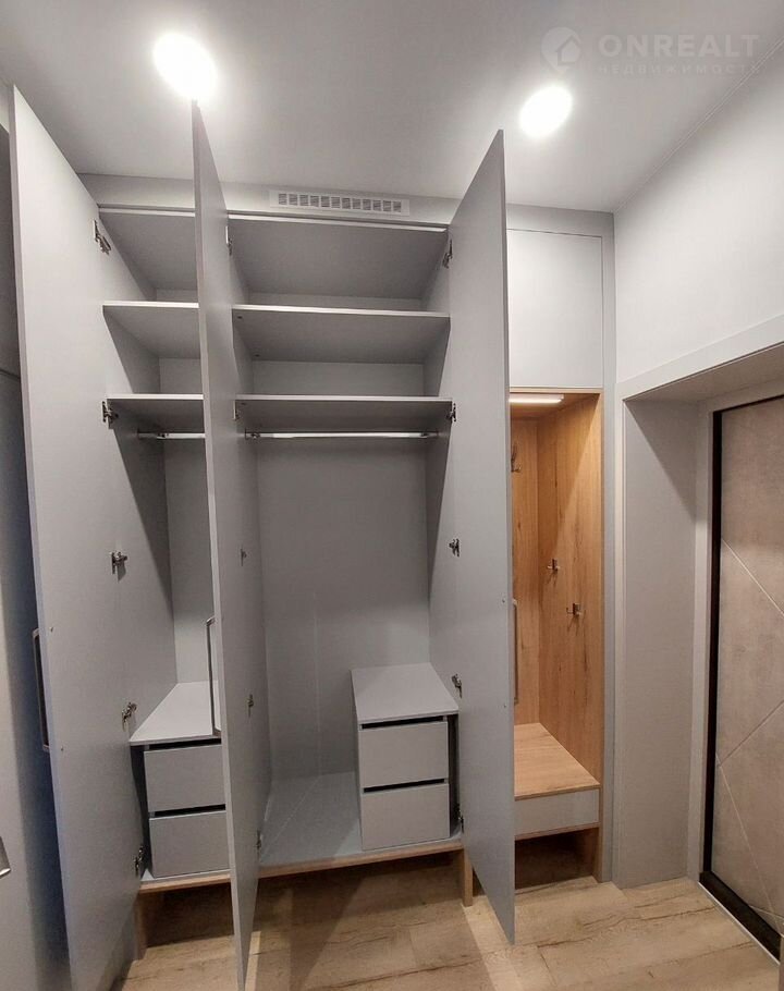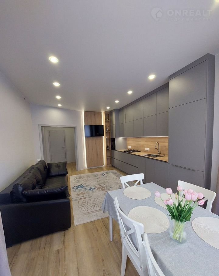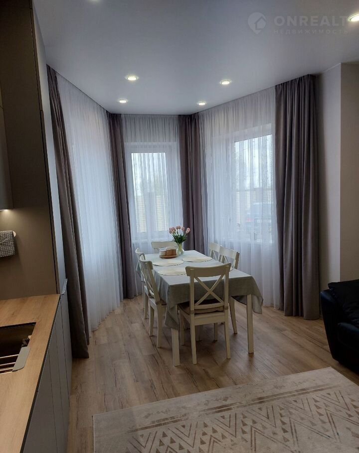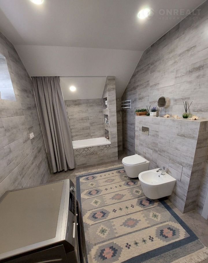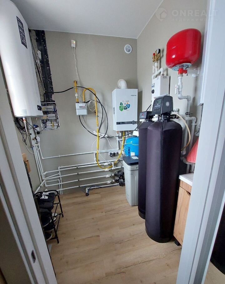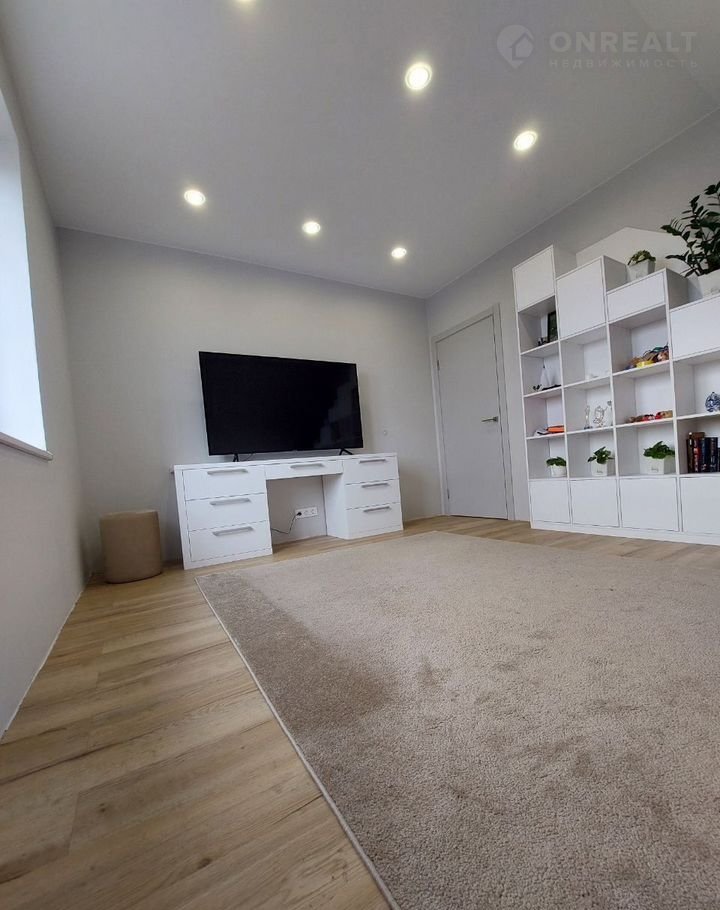 Теплый пол по всему периметру, единым контуром кварцвинил, стены известковая шпаклевка, что предотвращает плесень, грибок, на стенах молярный флезилин, обои под покраску, встроенные потолочные карнизы, предусмотрены розетки под гирлянды для еще большего уюта в доме.