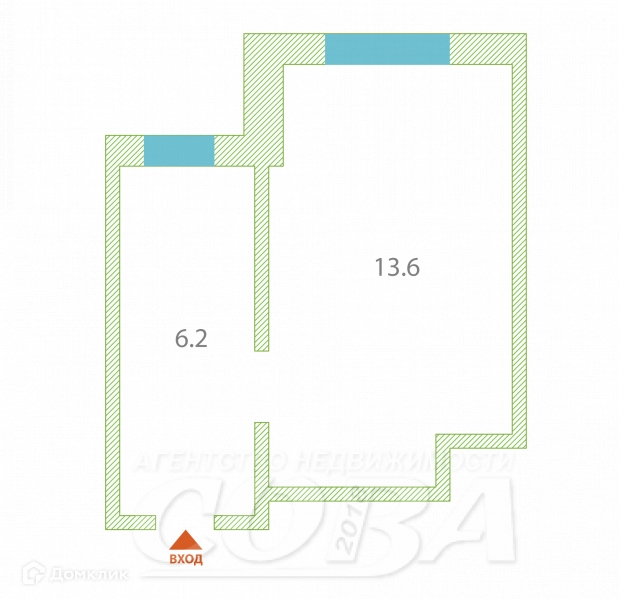 Общая площадь 22.1 м2