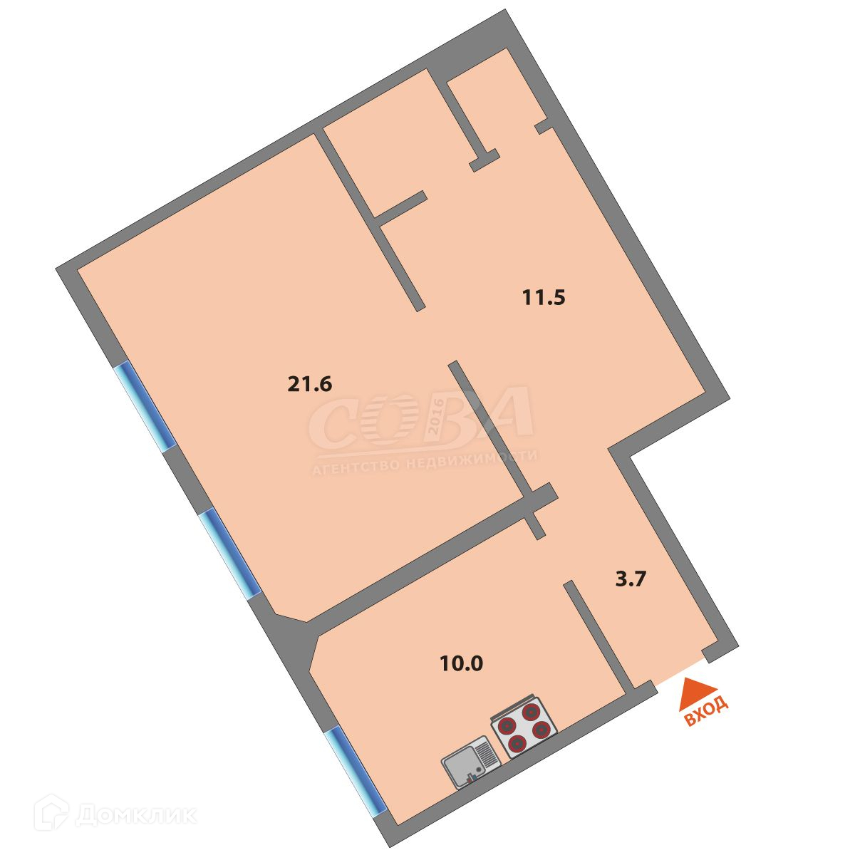 Общая площадь 51 м2