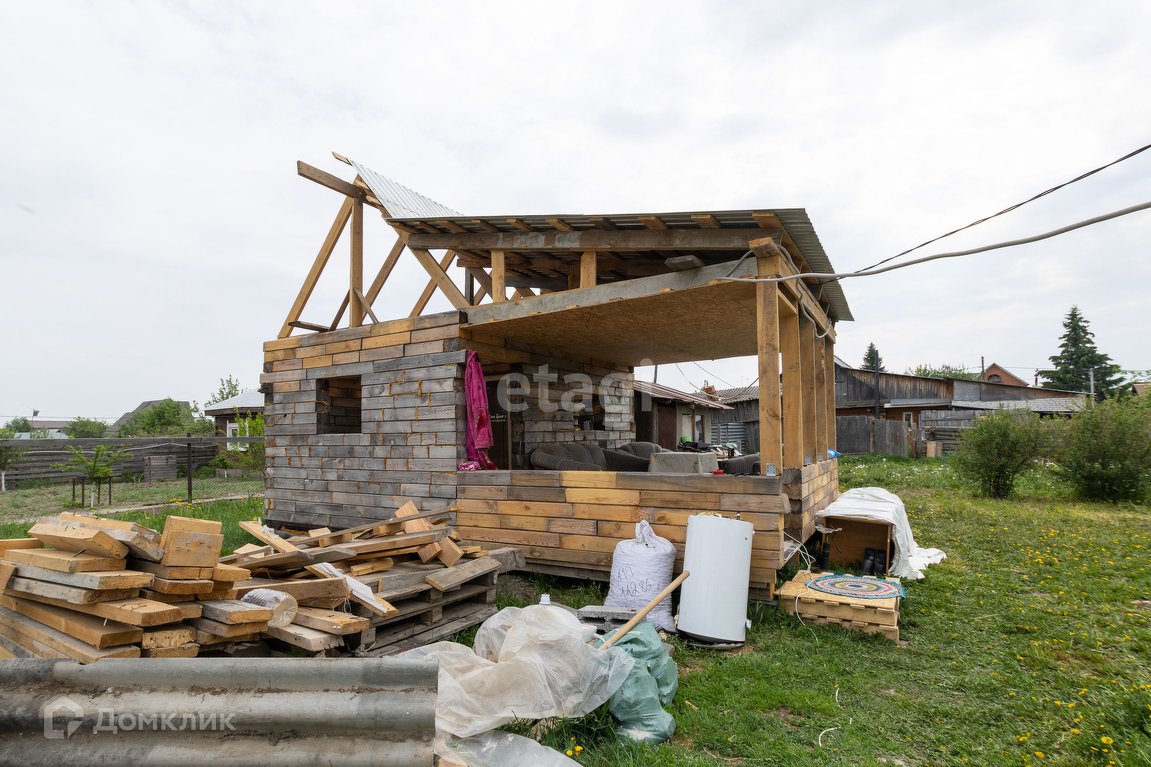 Также на участке есть новая баня из бруса с беседкой поставили в этом году. Очень удобно, для строительства дома и временного проживания.