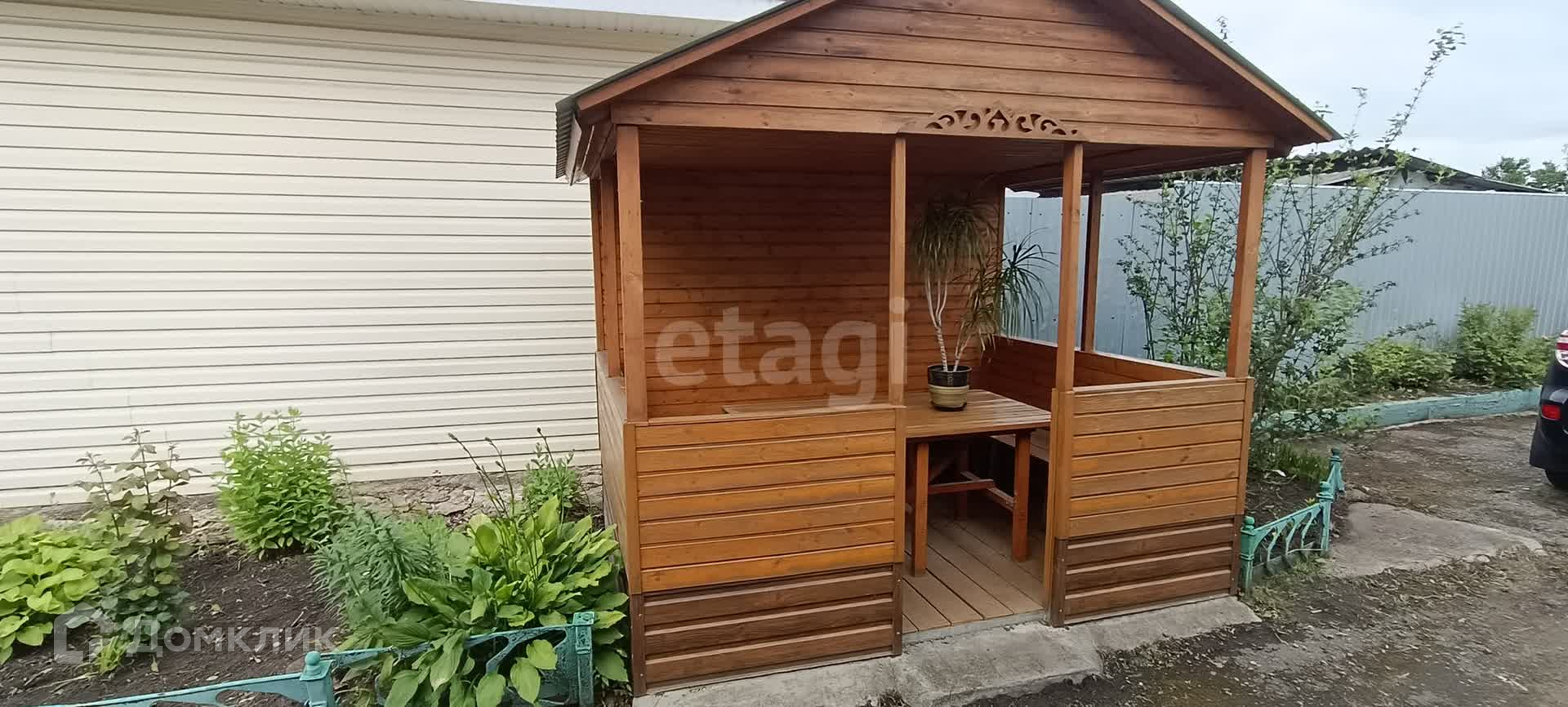 Во дворе имеется просторный гараж, сараи, беседка, времянка, летний душ, разбита клумба с цветами, небольшой земельный участок с ягодными кустами и деревьями. Двор чистый и асфальтированный.