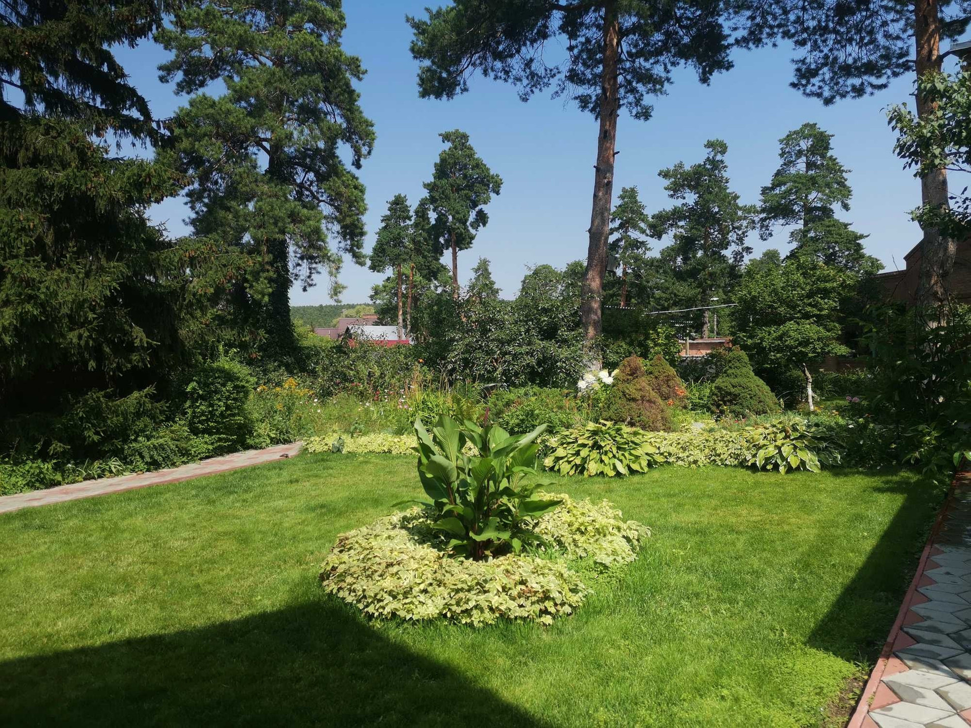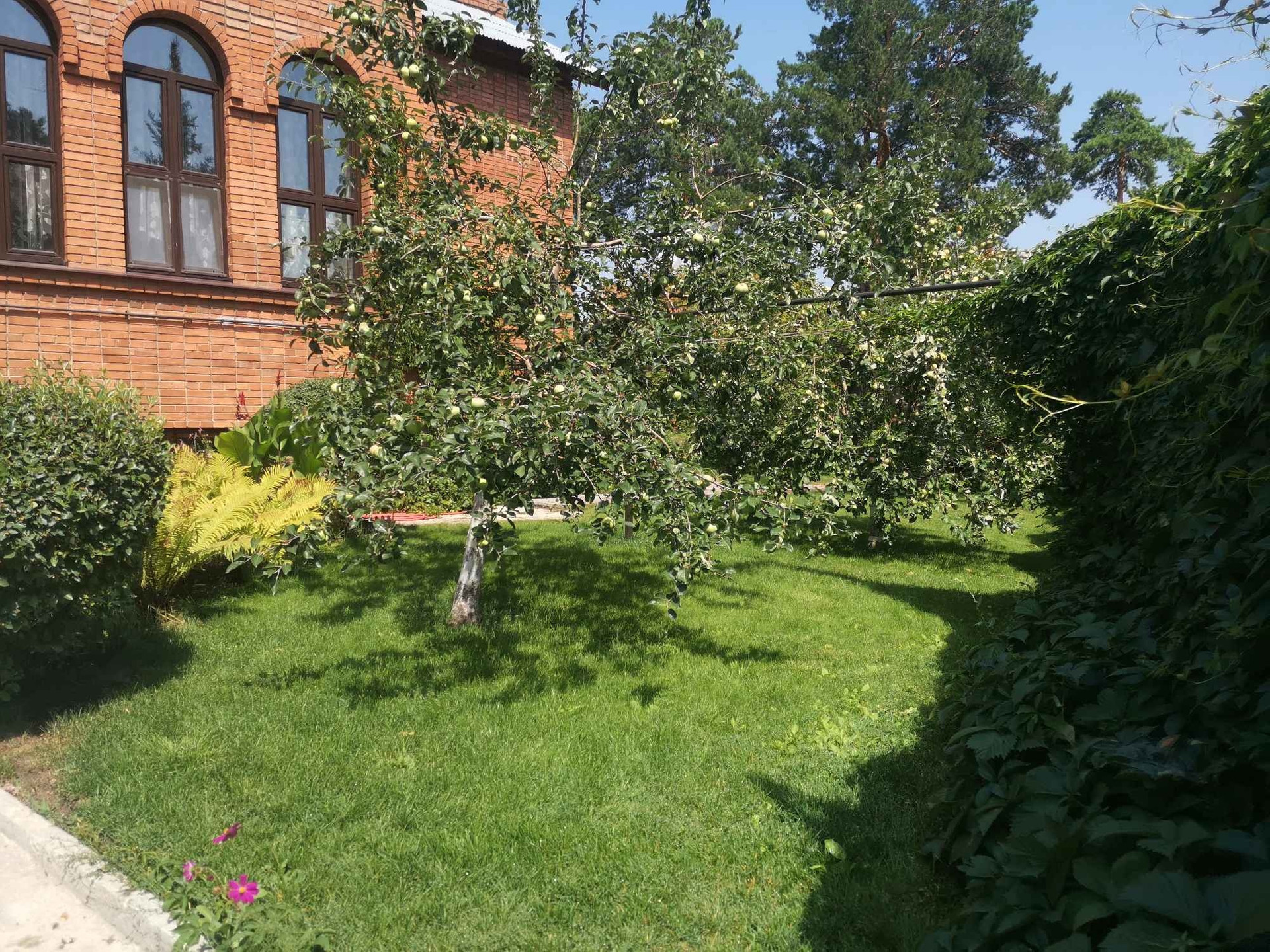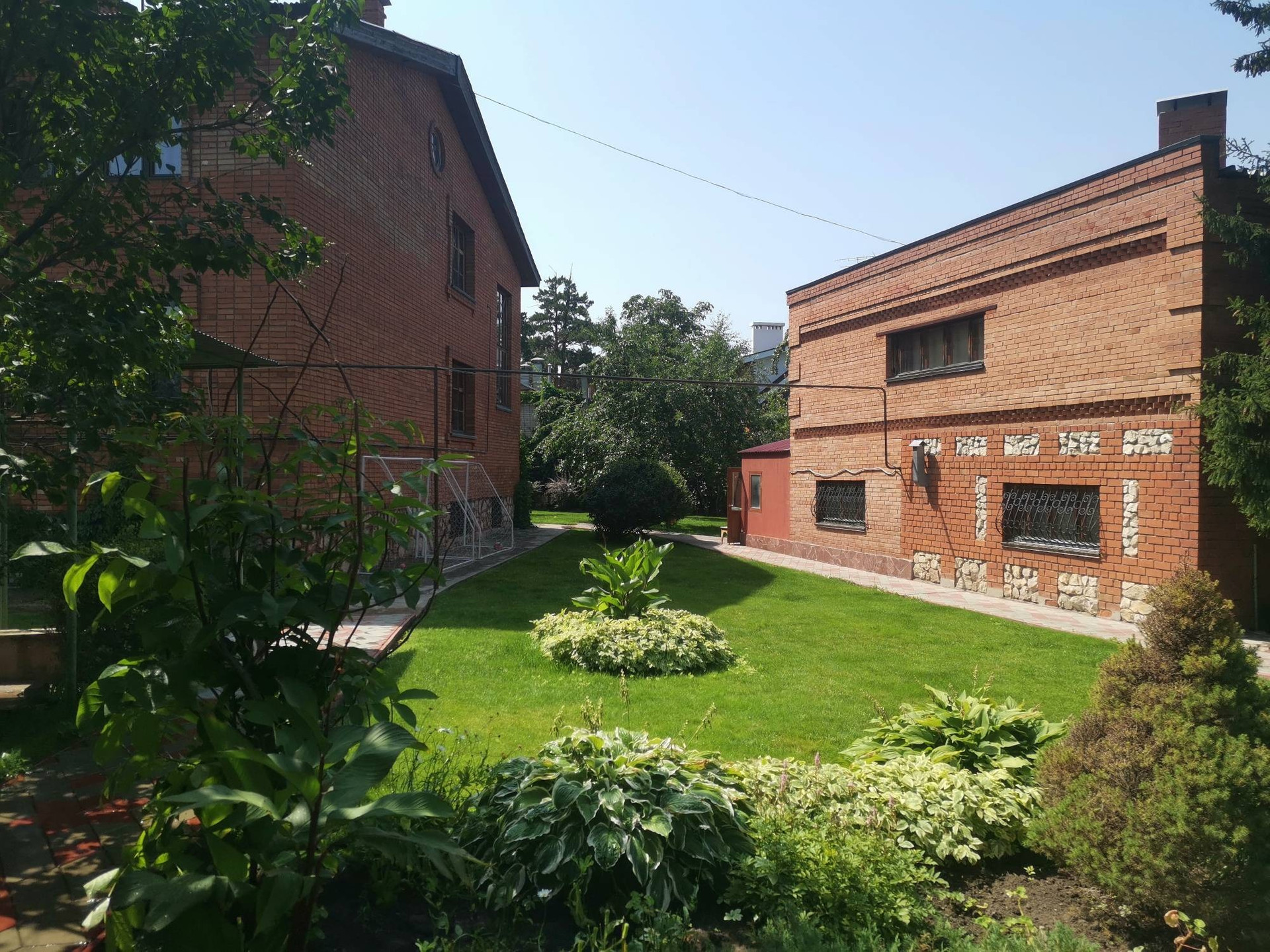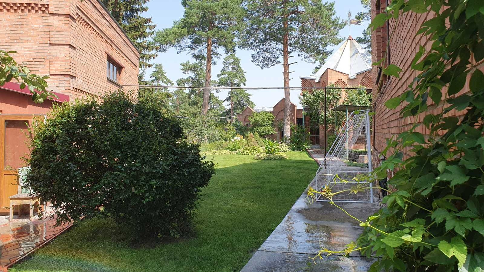 Дом расположен на земельном участке в 2466,00 соток с ландшафтным дизайном. Посажены туи и ели, есть автоматический полив, освещение по всему участку.