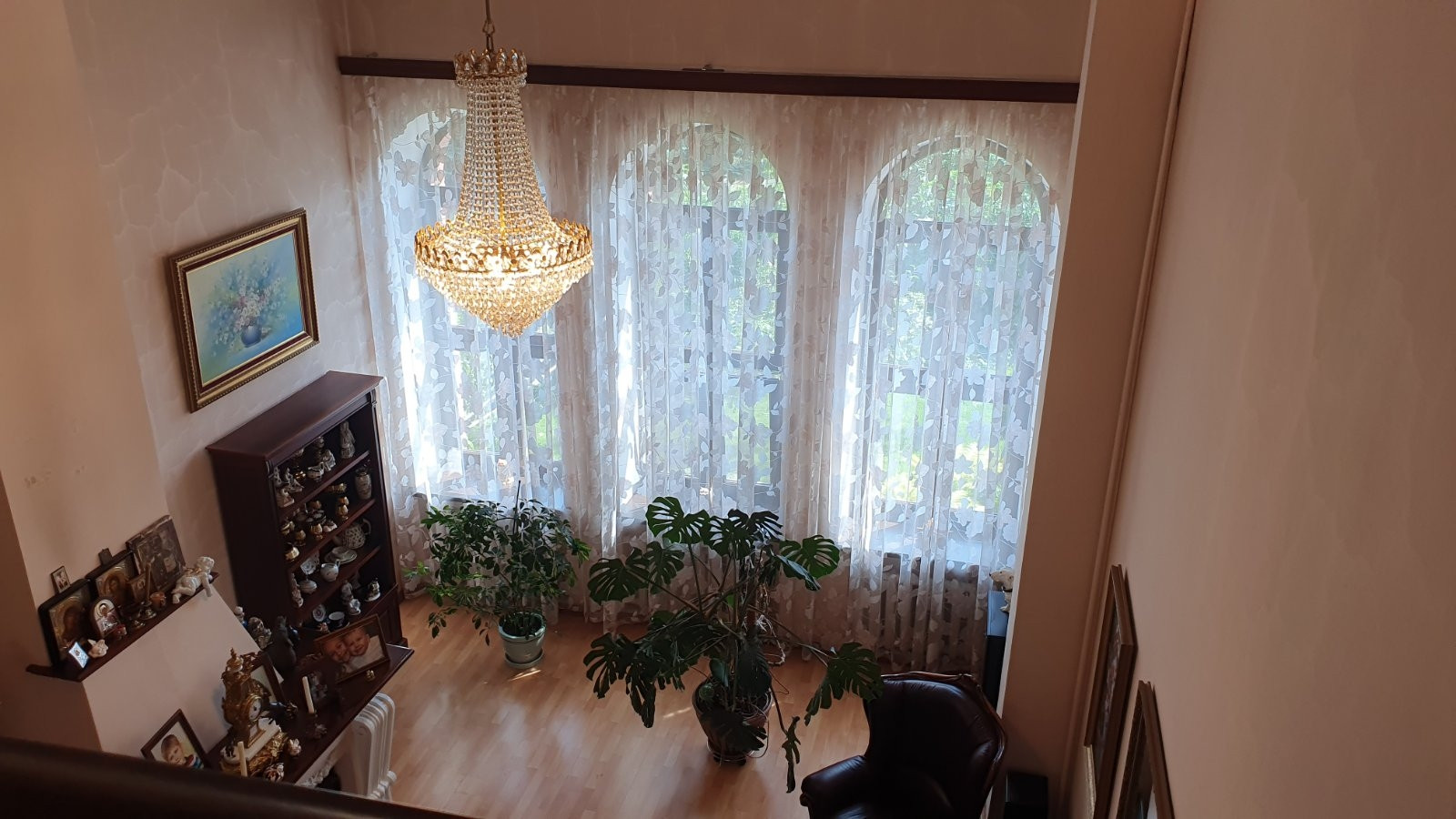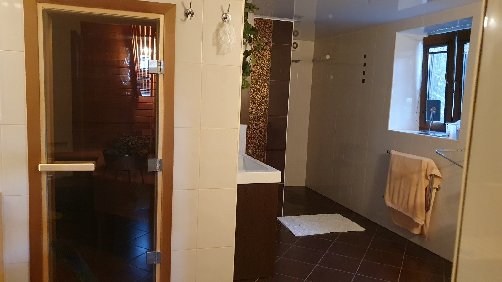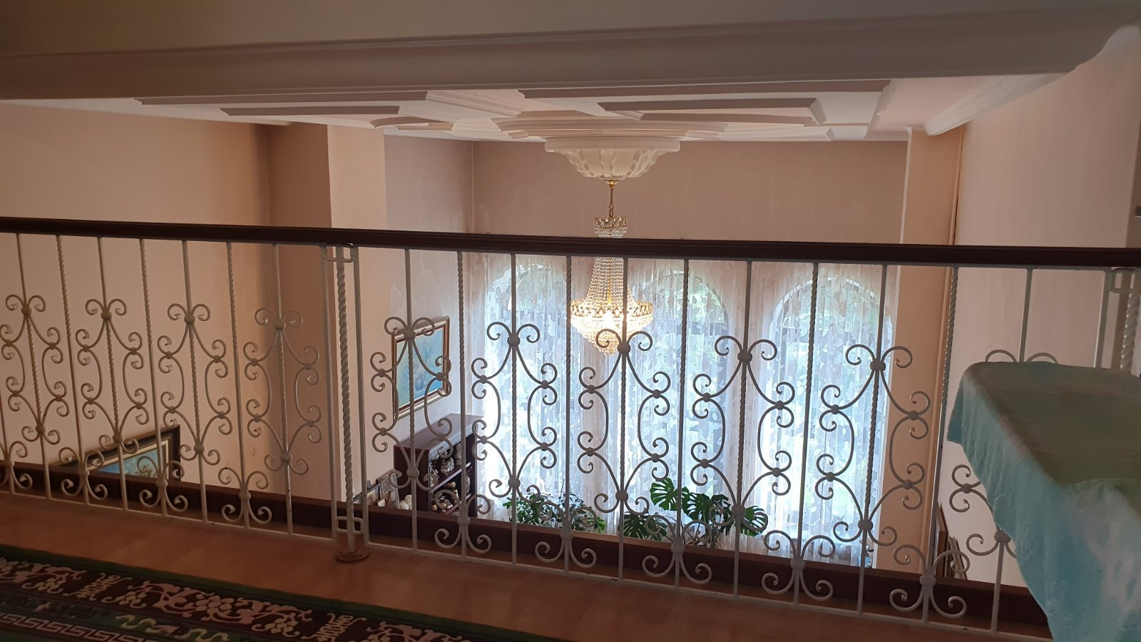 Во всем доме потолки разномерные, люстра в зале опускается автоматически, для удобства замены лампочек и влажной уборки, в бане и беседке установлены люстры-вентиляторы, все коммуникации центральные.