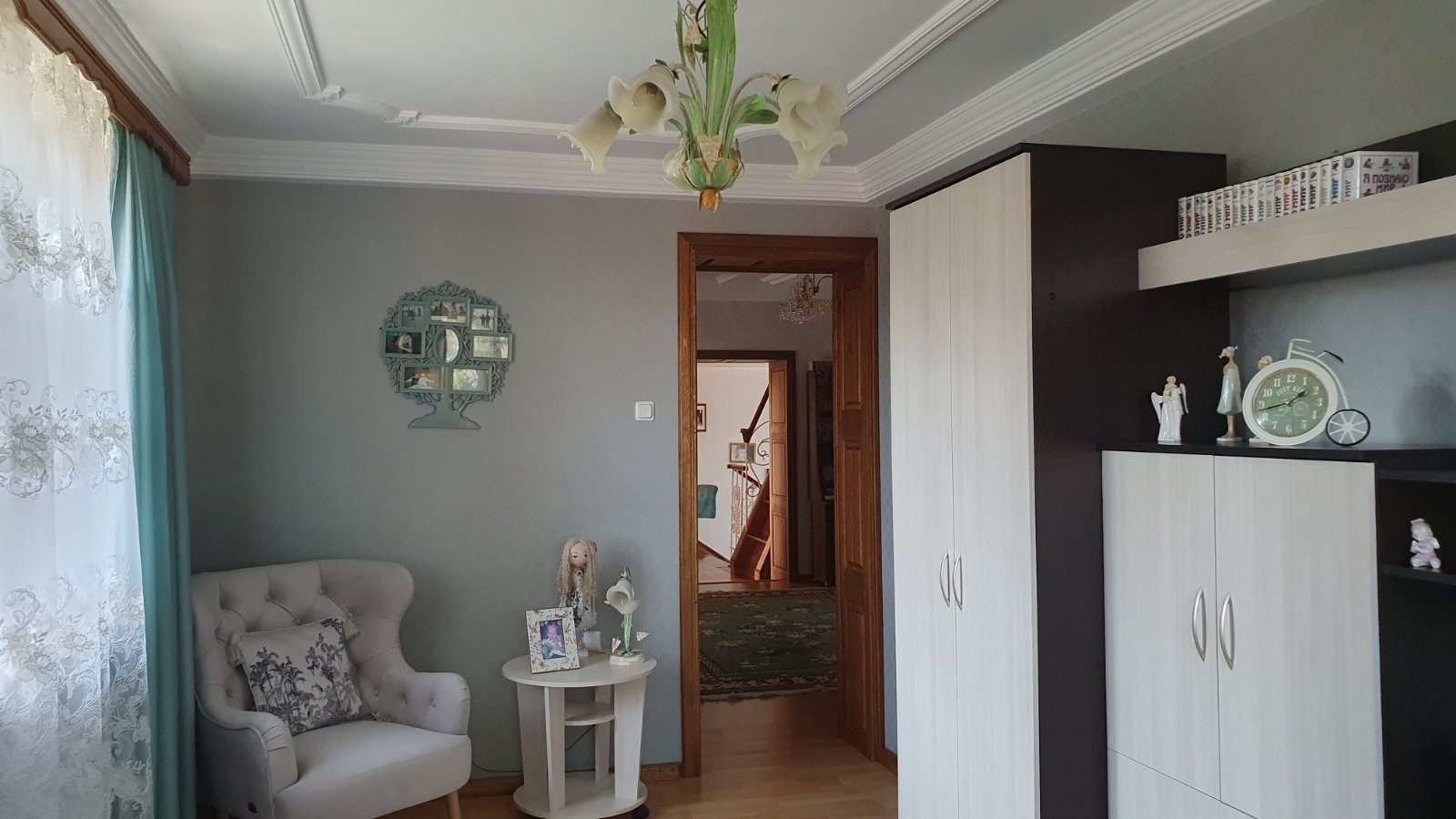 2 этаж – спальня, детская, большой холл, туалет и ванная, застекленная терраса с выходом выход на балкон,
