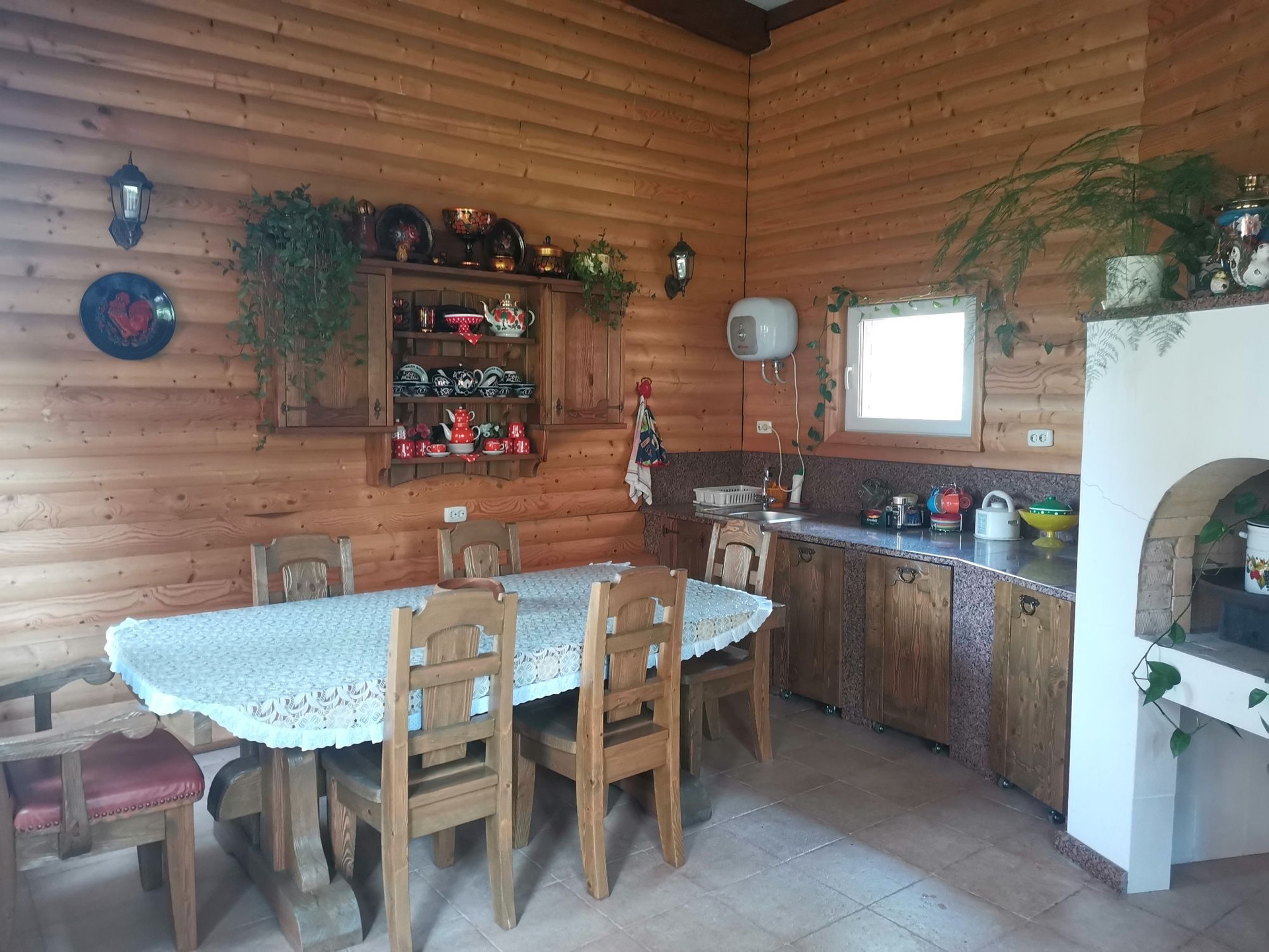 - Большая галерея с 3 большими сараями, летним туалетом и шашлычкой в которой находится настоящая печь и зал для посиделок, в любое время года ( зима-лето). Напротив построена большая беседка с залом для гостей вместимостью до 15 человек.