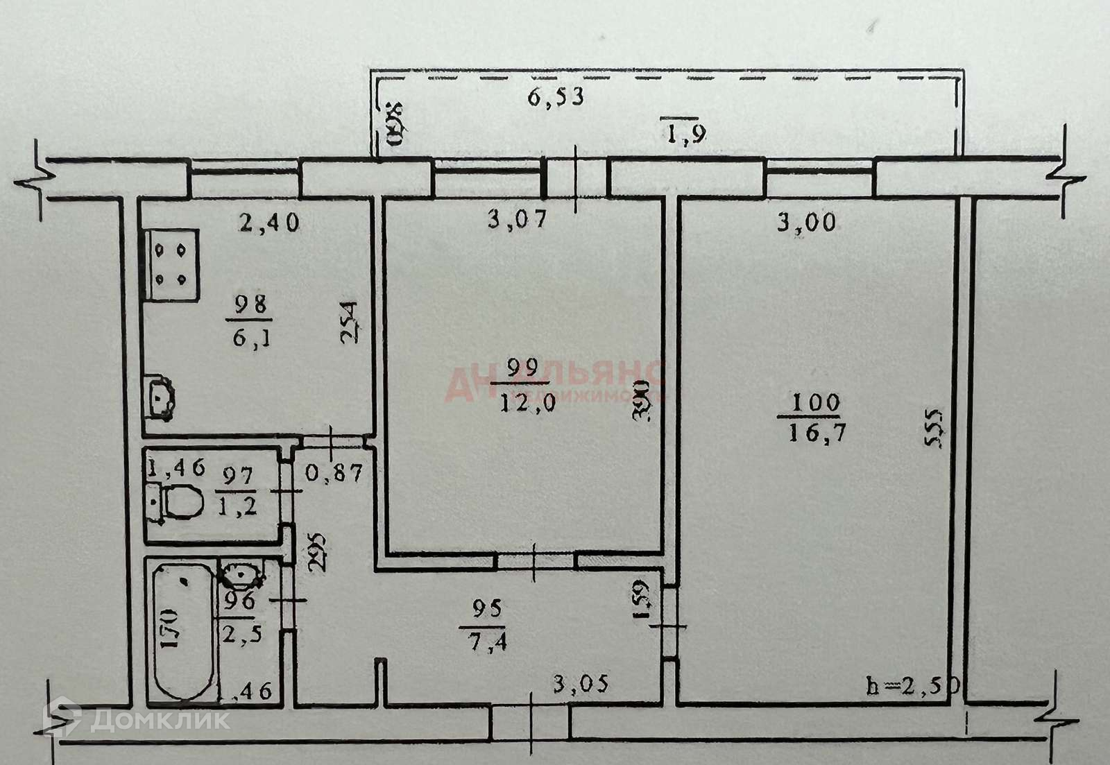 Высота потолков 2.7 м