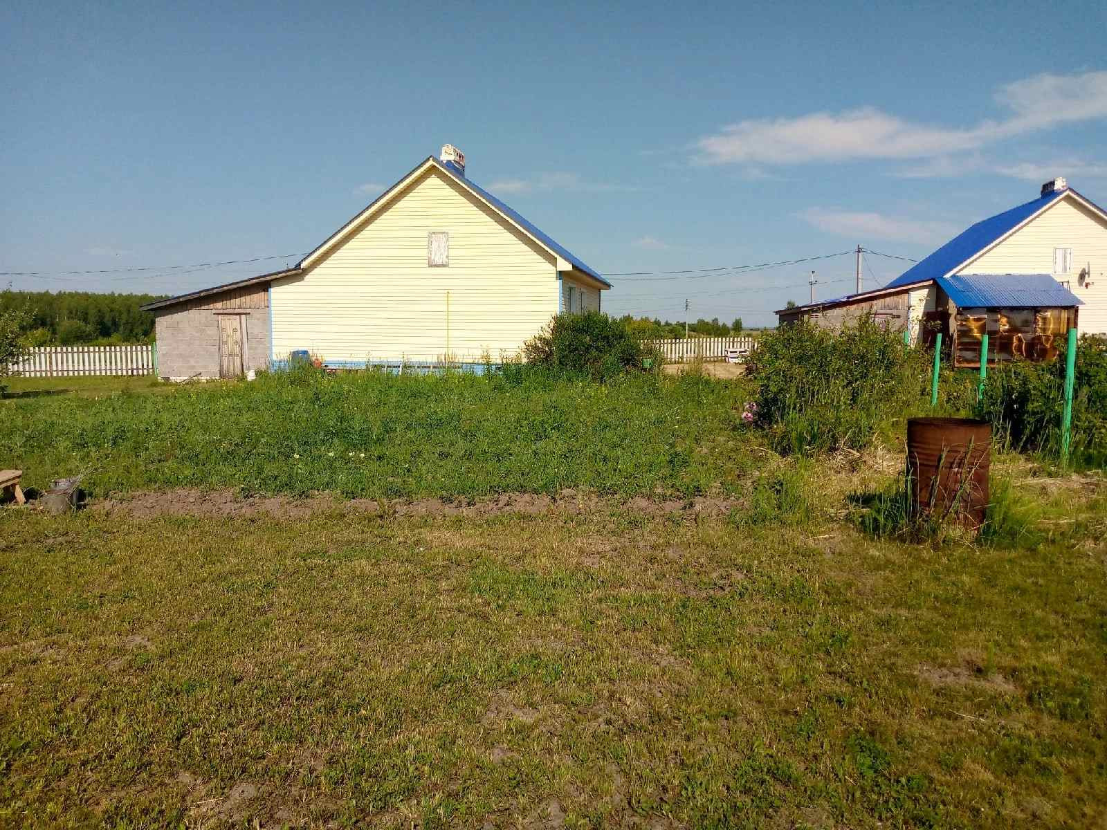 Дом расположен на земельном участке, который засажен газонной травой, также есть молодые кустарники.
