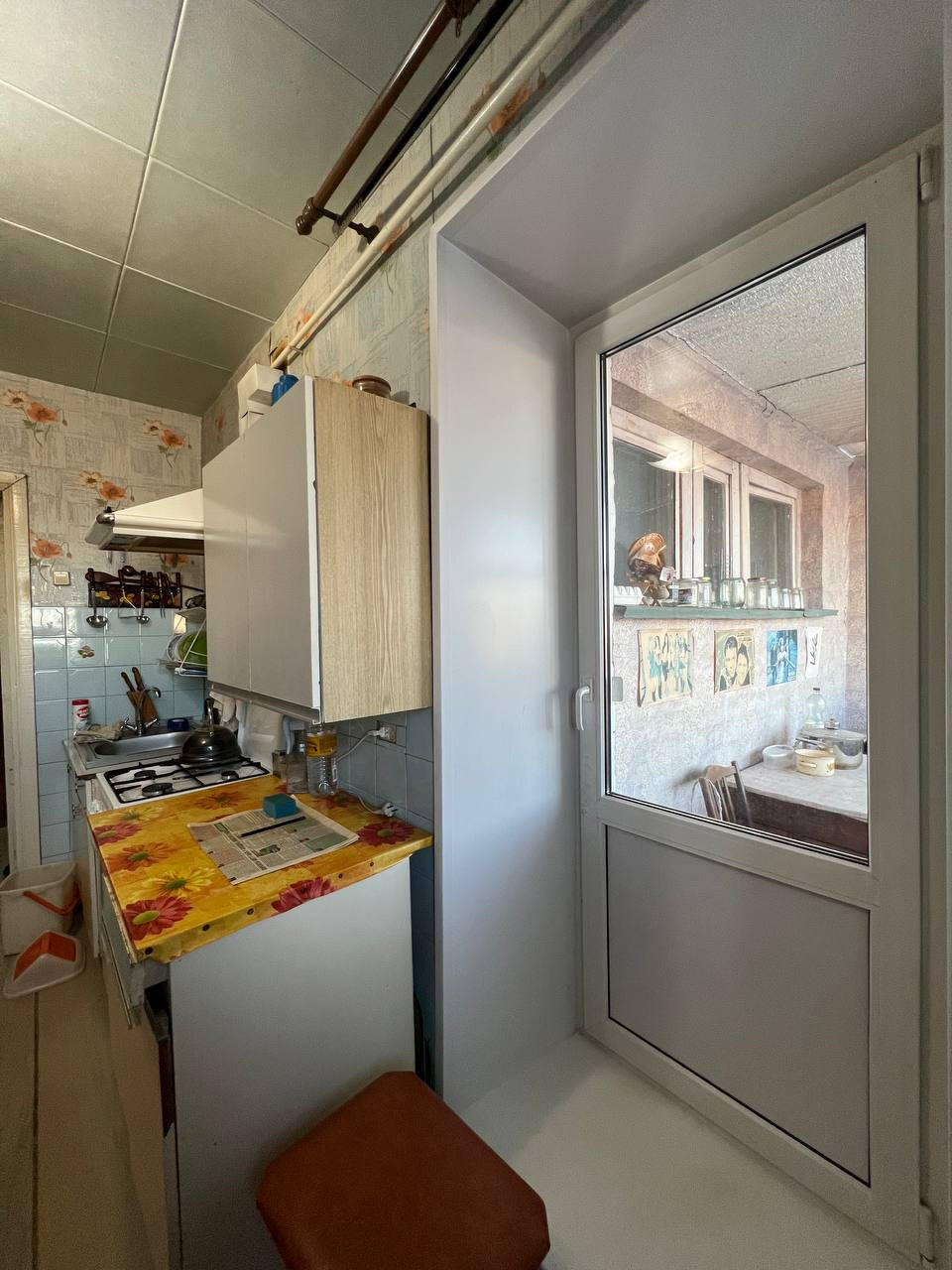 Выход на балкон с пластиковым окном и дверью.