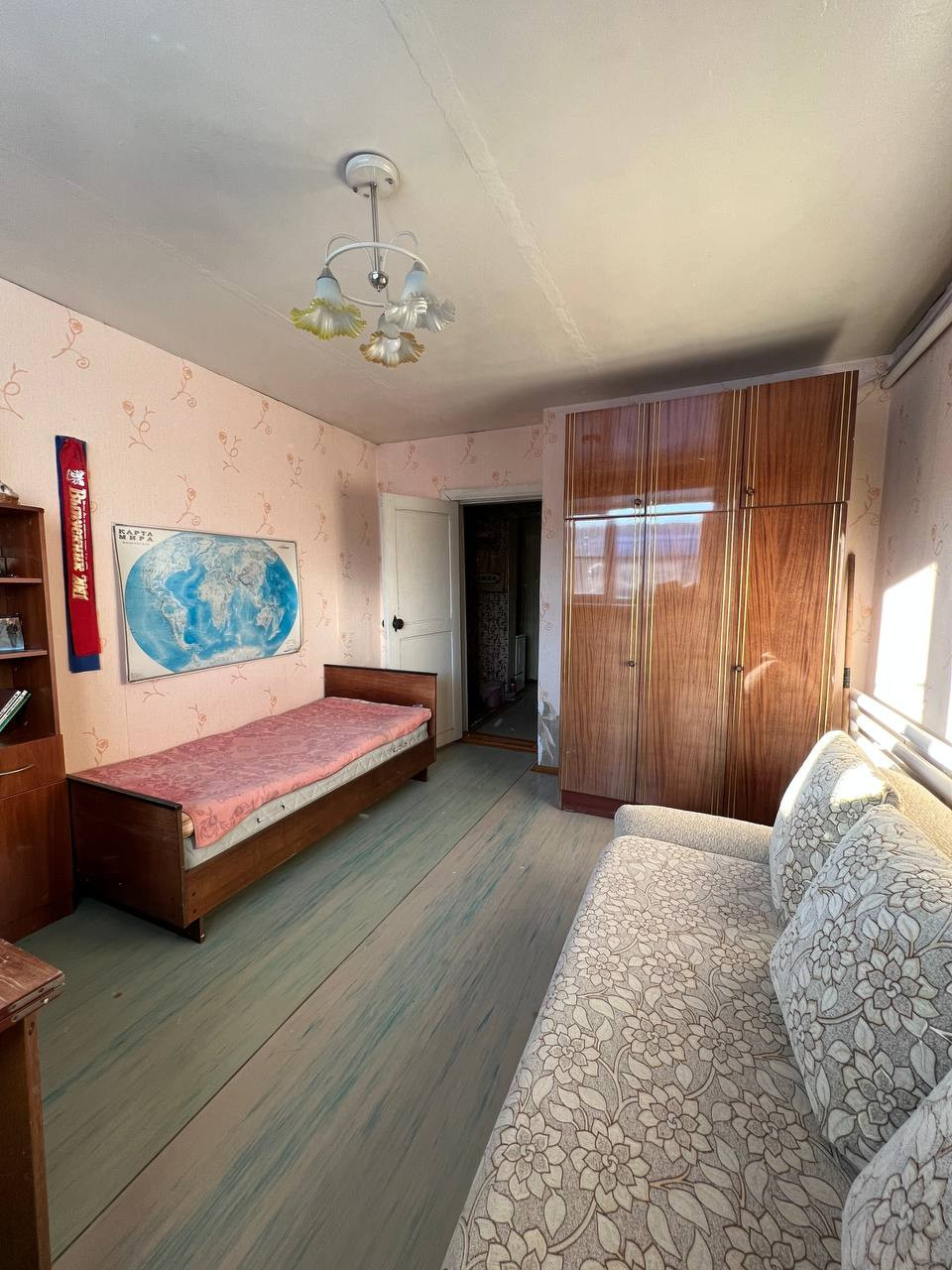 На полу везде линолеум, на стенах обои, не совсем новые, но из тех которые сделаны на века.