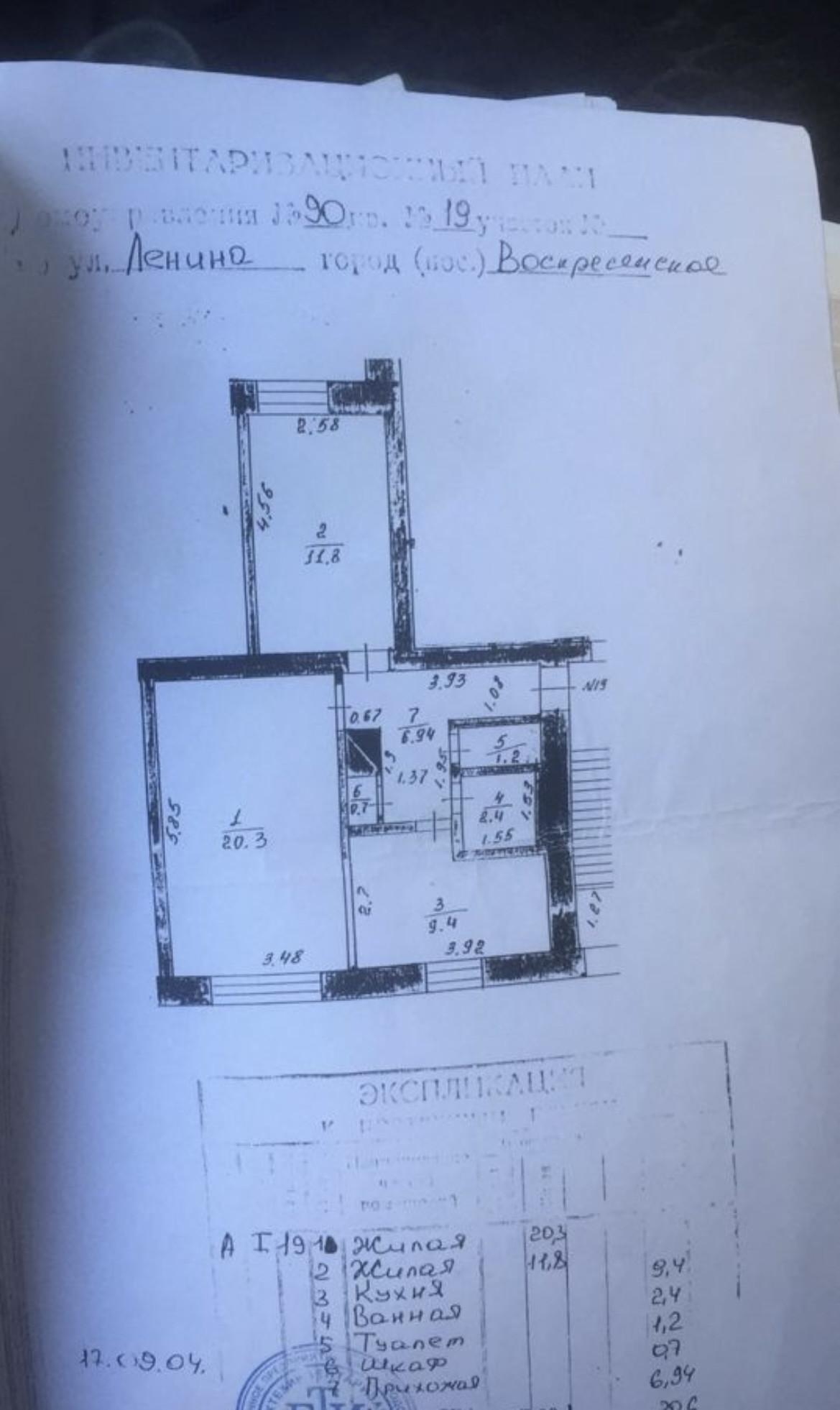 2-комнатная квартира, 52.7 м2, этаж 1 / 3, на продажу в рабочем посёлке Воскресенское, улица Ленина, 90