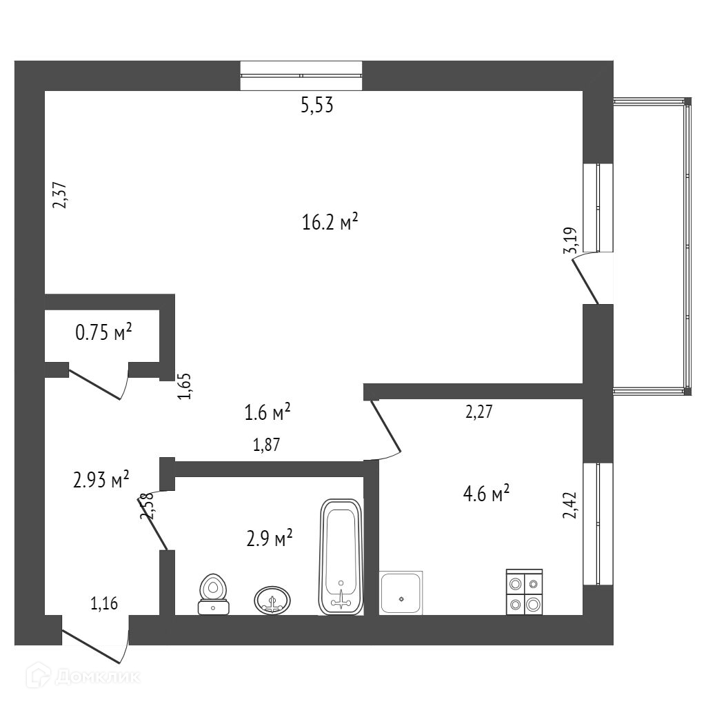 Общая площадь 29.7 м2