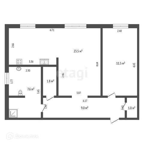 Общая площадь 54.7 м2