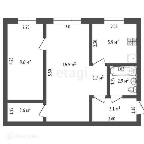 Общая площадь 42.3 м2