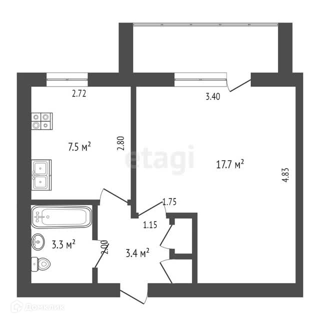 Общая площадь 32.9 м2