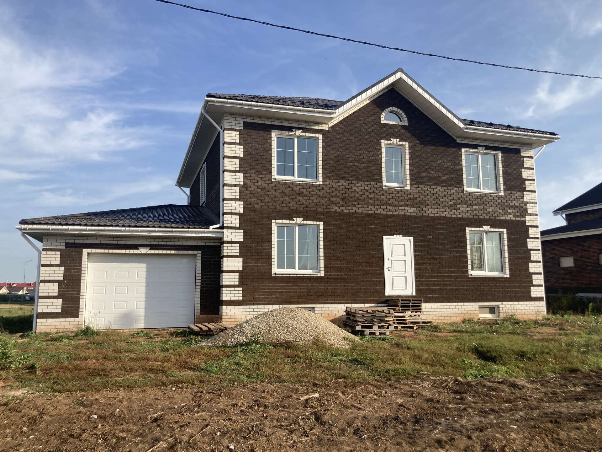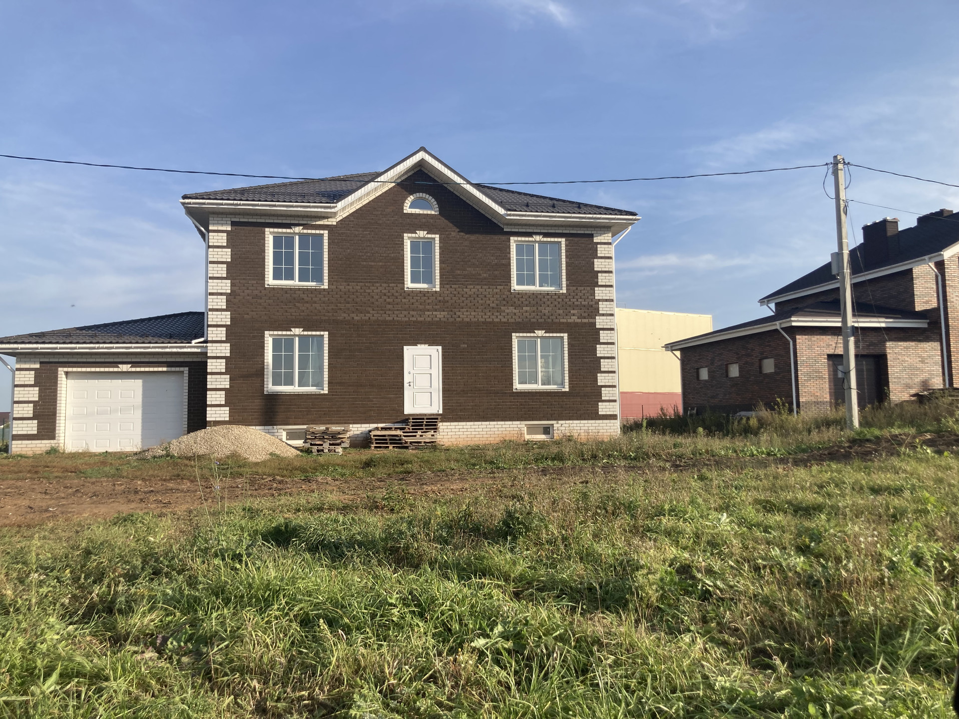 Продаю новый дом в доме электричество, вода. газ стены отштукатурены под шпаклевку .Гостинная совмещена с кухней ,5 спален 2 санузла,гардеробная,котелная.большой гараж.
