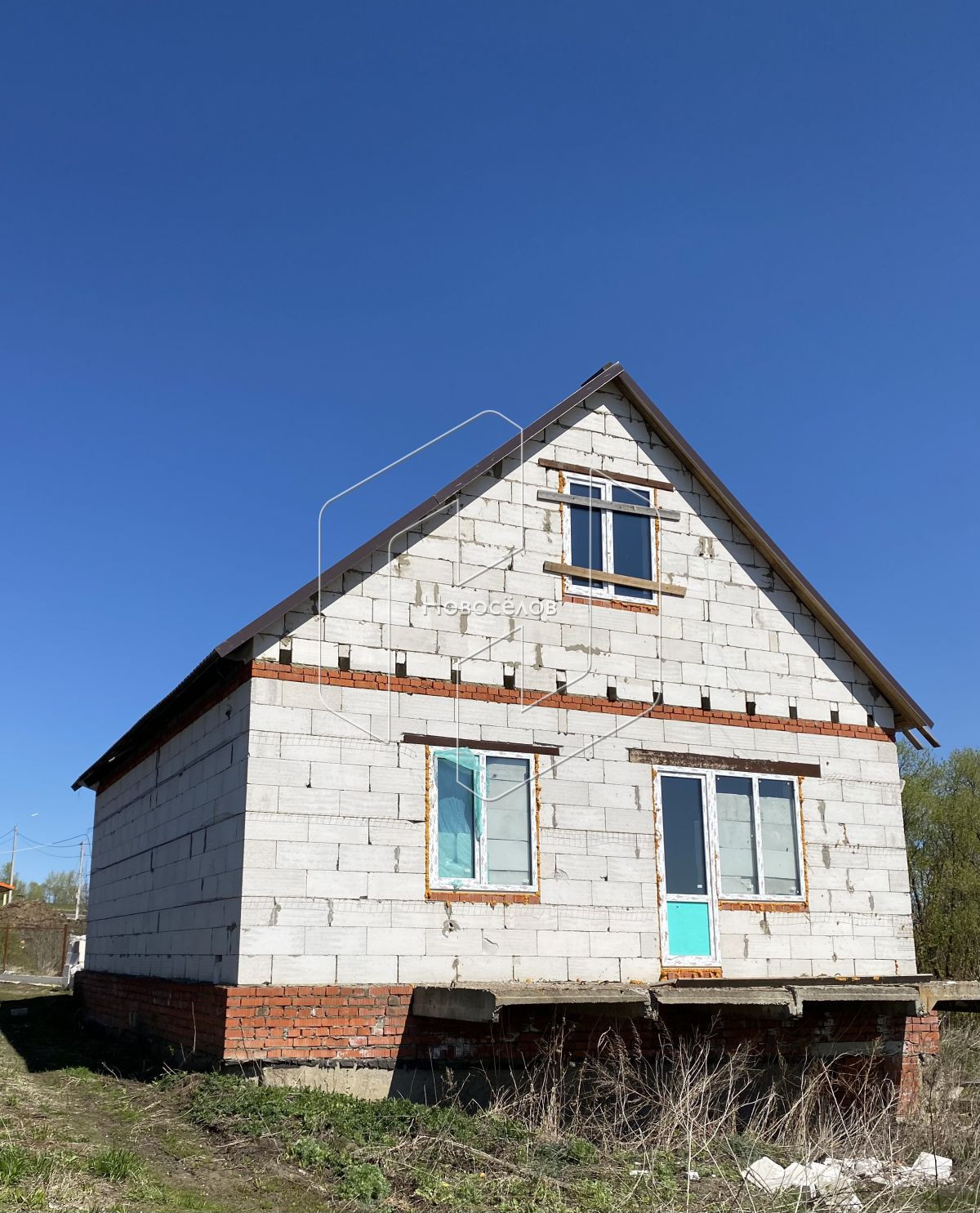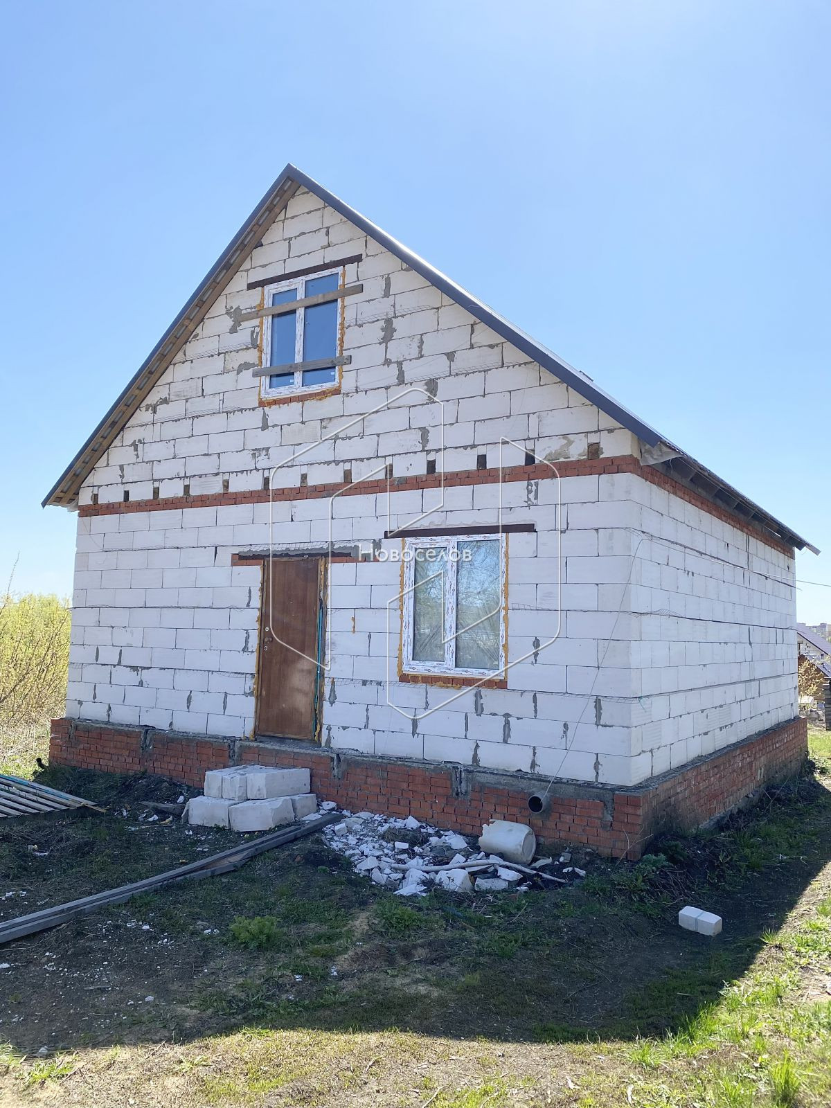 Дом построен из пеноблоков, есть возможность обложить фасадные стены облицовочным кирпичом. Блочный фундамент.
