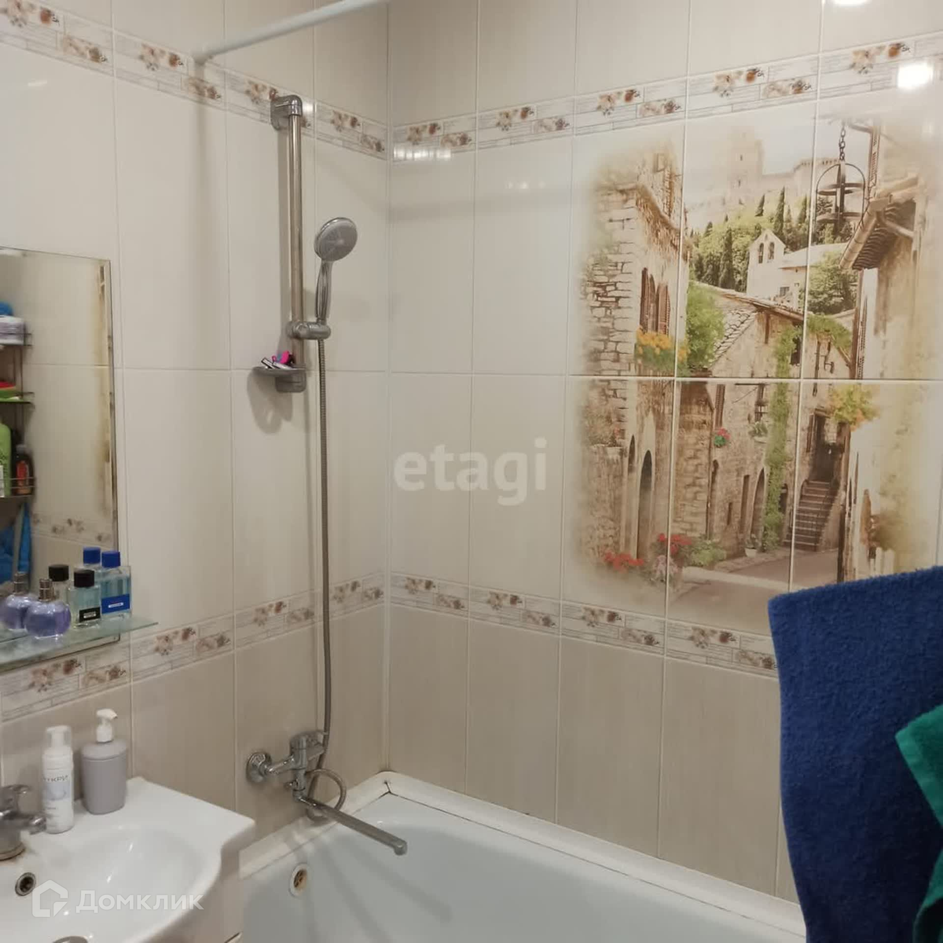 Санузел совмещённый в кафеле.