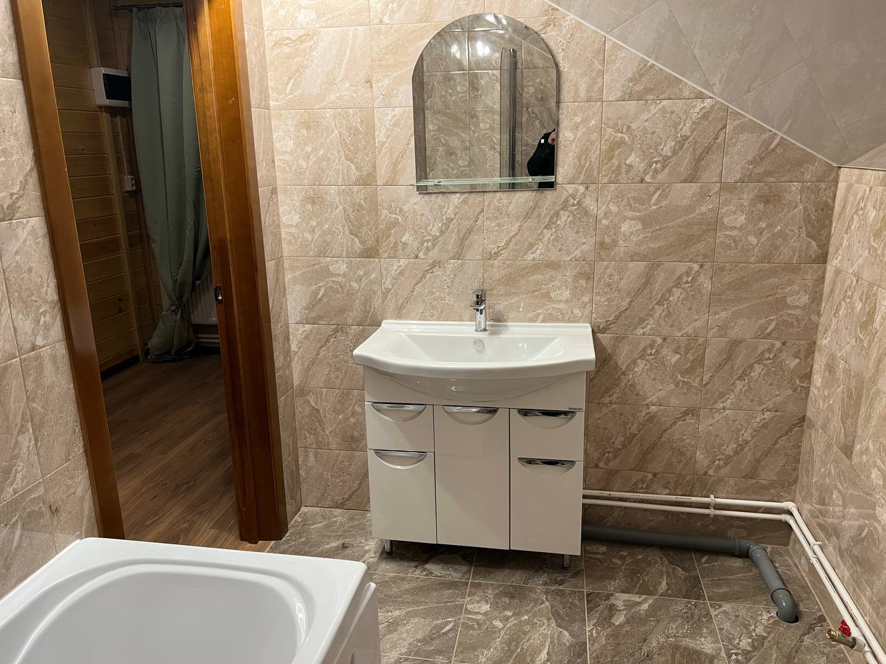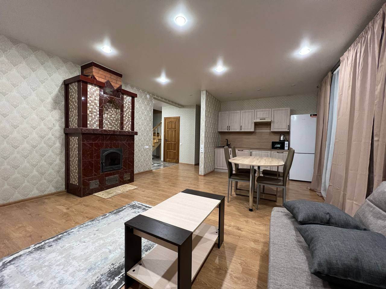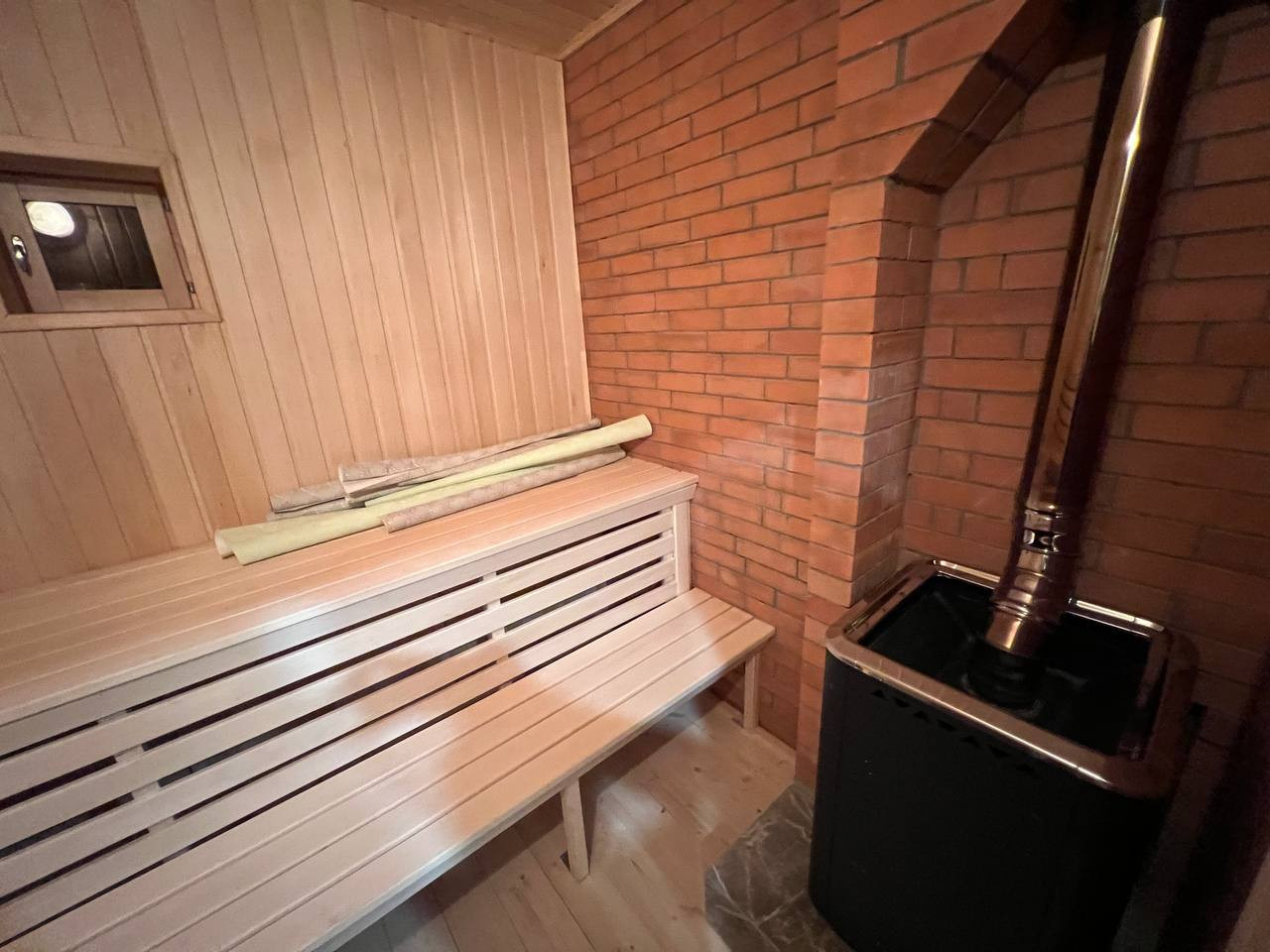 В комплексе дома имеется баня на дровах с зоной отдыха с выходом на большую просторную летнюю веранду.